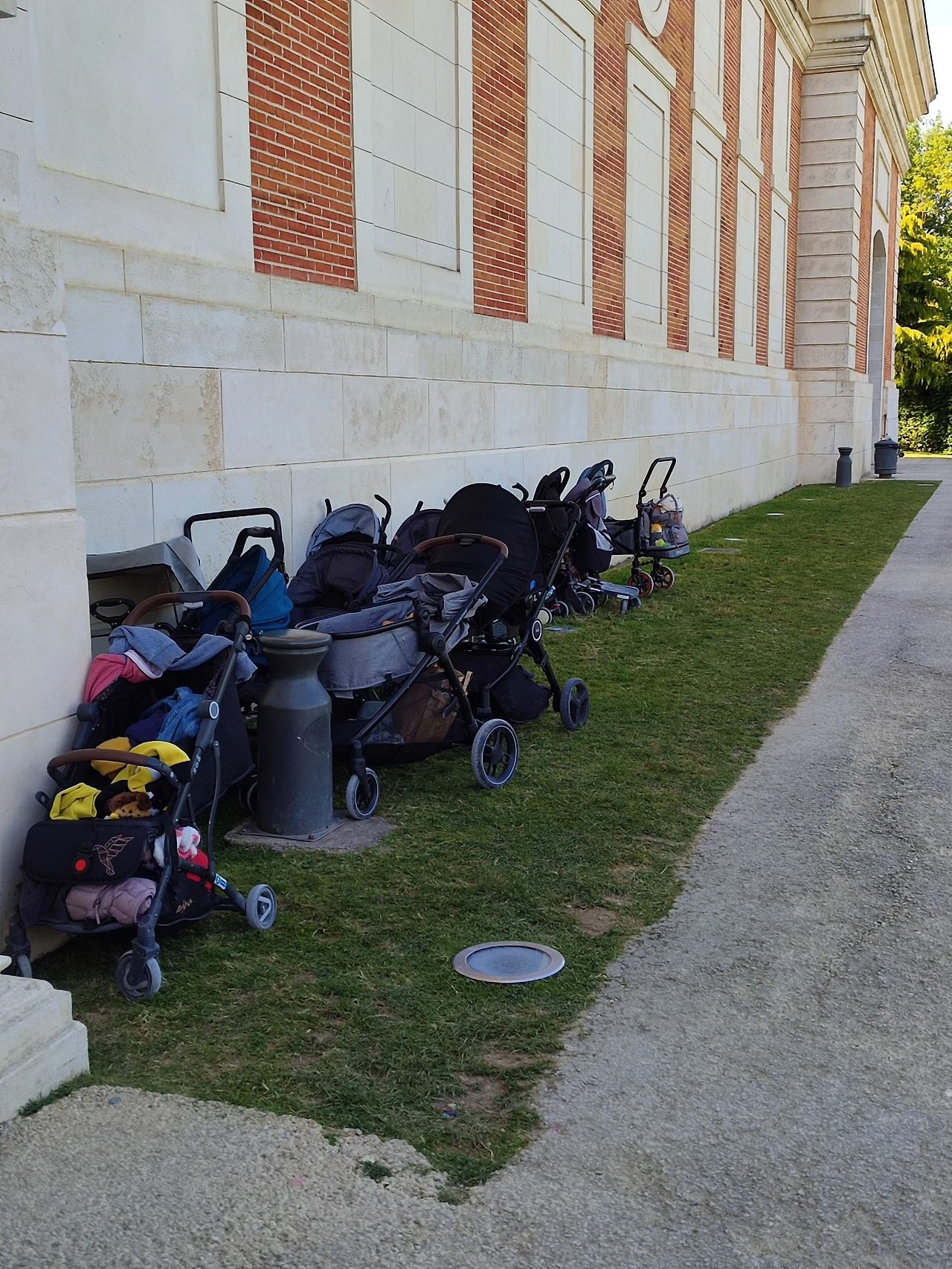 공연장 앞에 있는 유모차들.