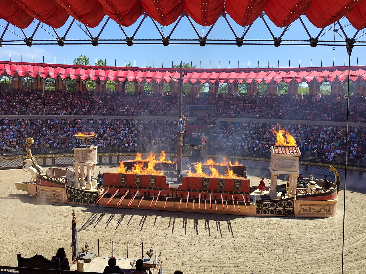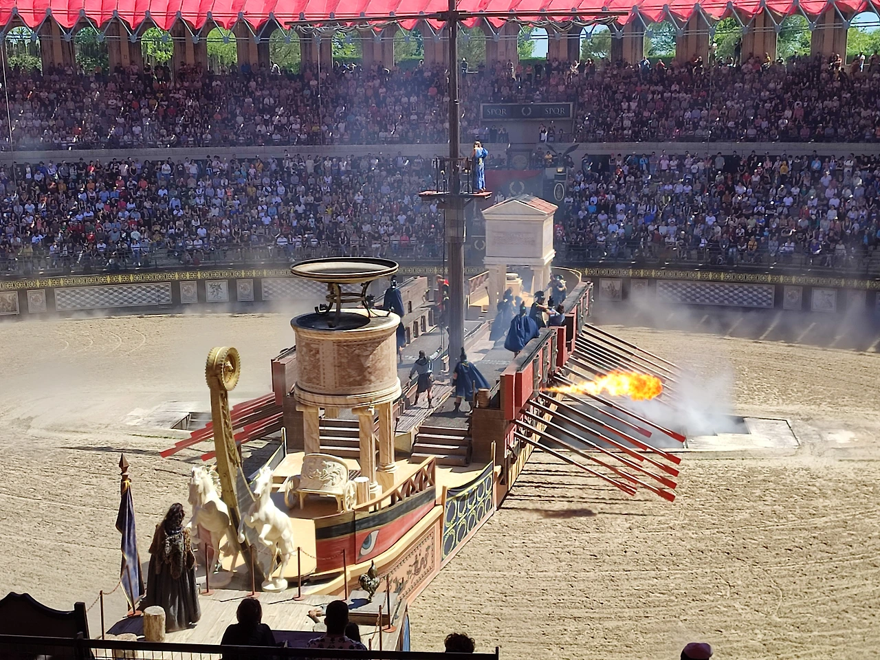 무대가 갑자기 배로 변하면서 불까지 뿜어져 나왔다.