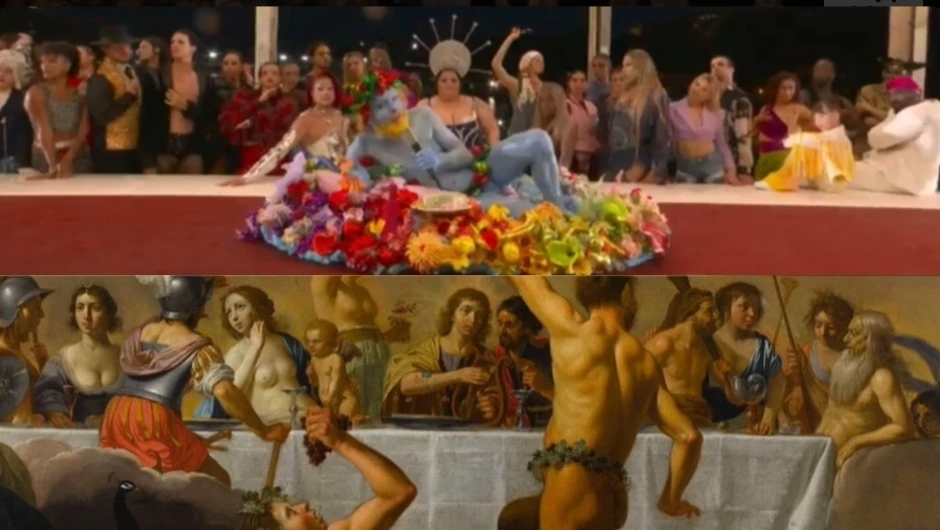 에펠탑 앞에서는 패션쇼도 보여줬다. 물론 남자가 여장을 하고 말이다.최후에 만찬을 풍자했는데 종교계는 유감을 표했다.