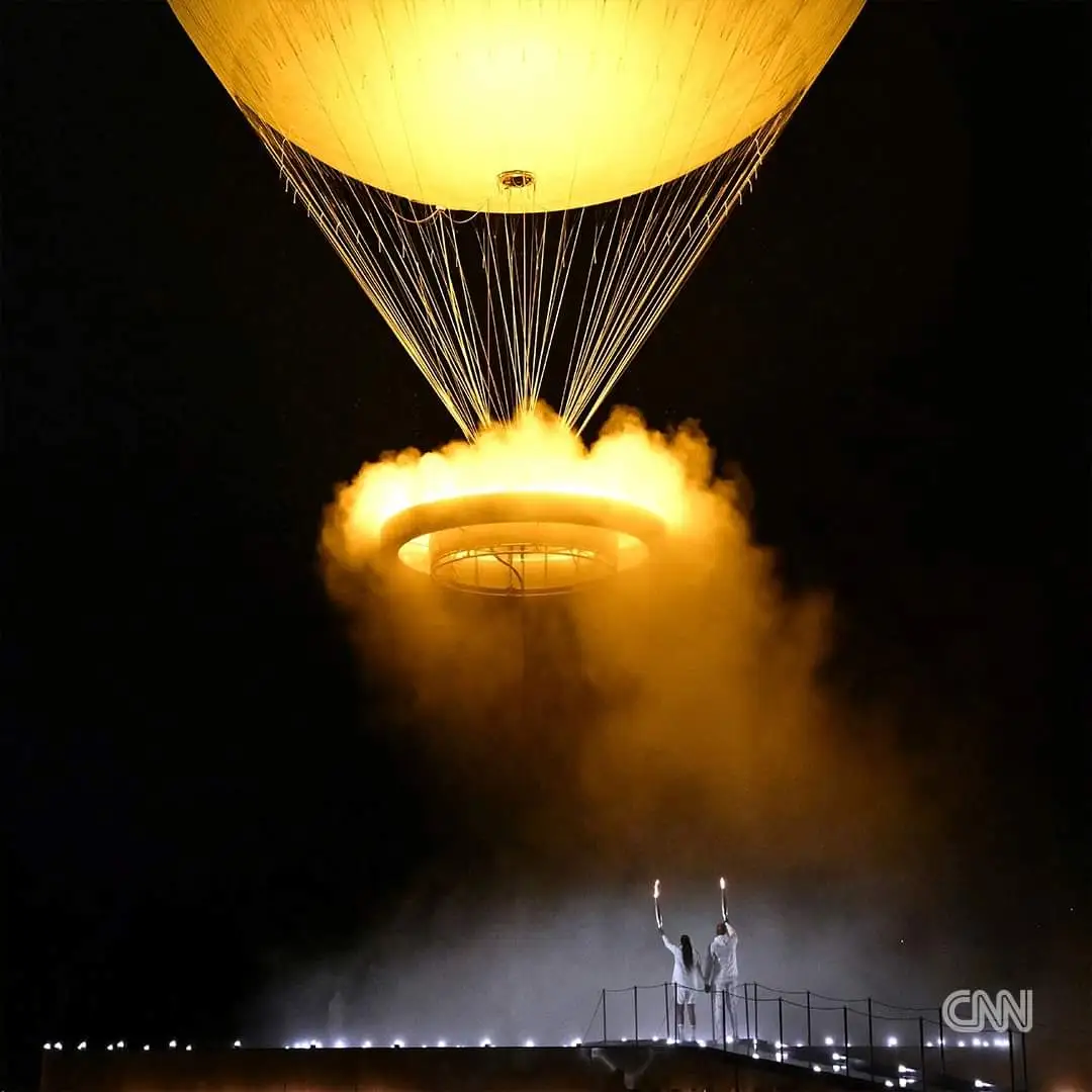 드디어 튈르리 공원 분수대에 몽골피에에 성화 불이 붙었다. 이렇게 4시간의 개막식이 끝났다.