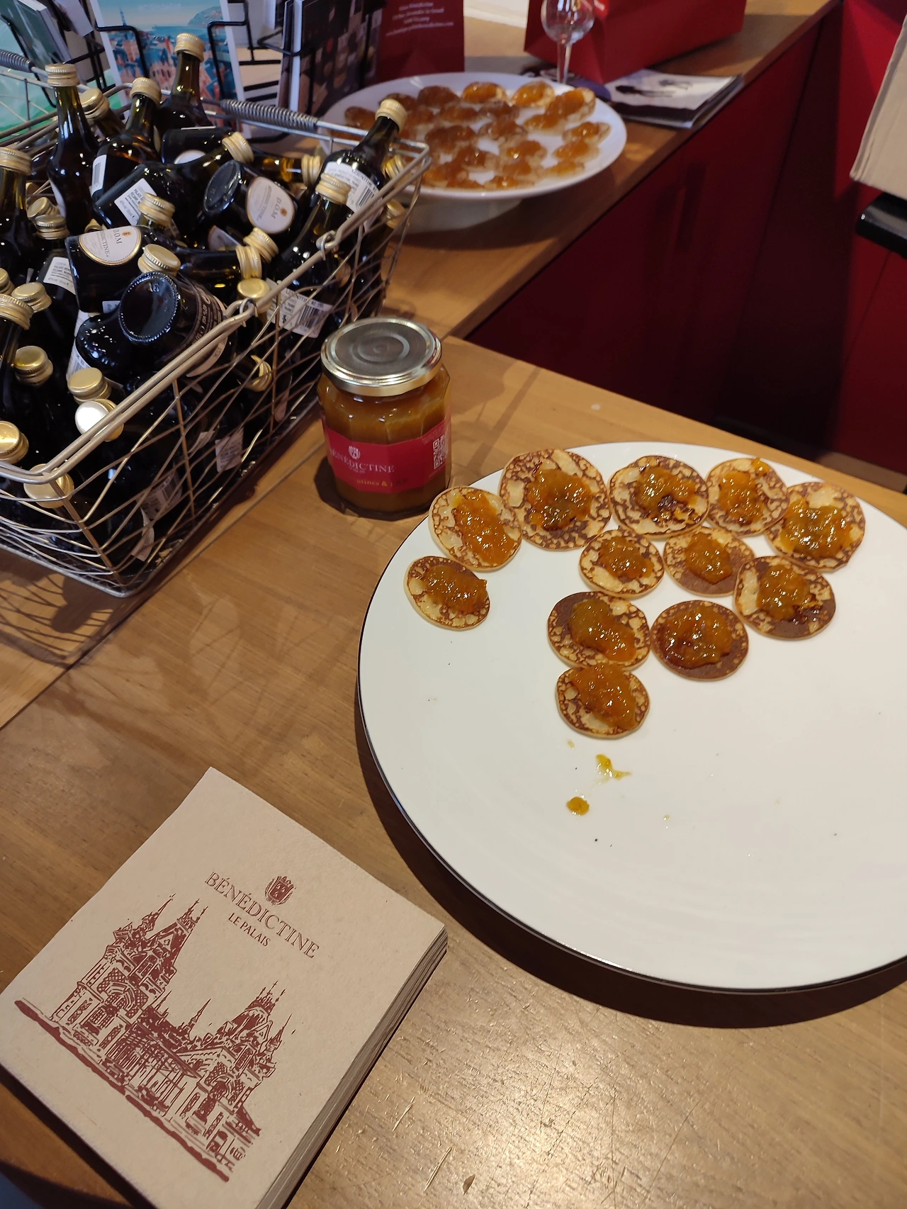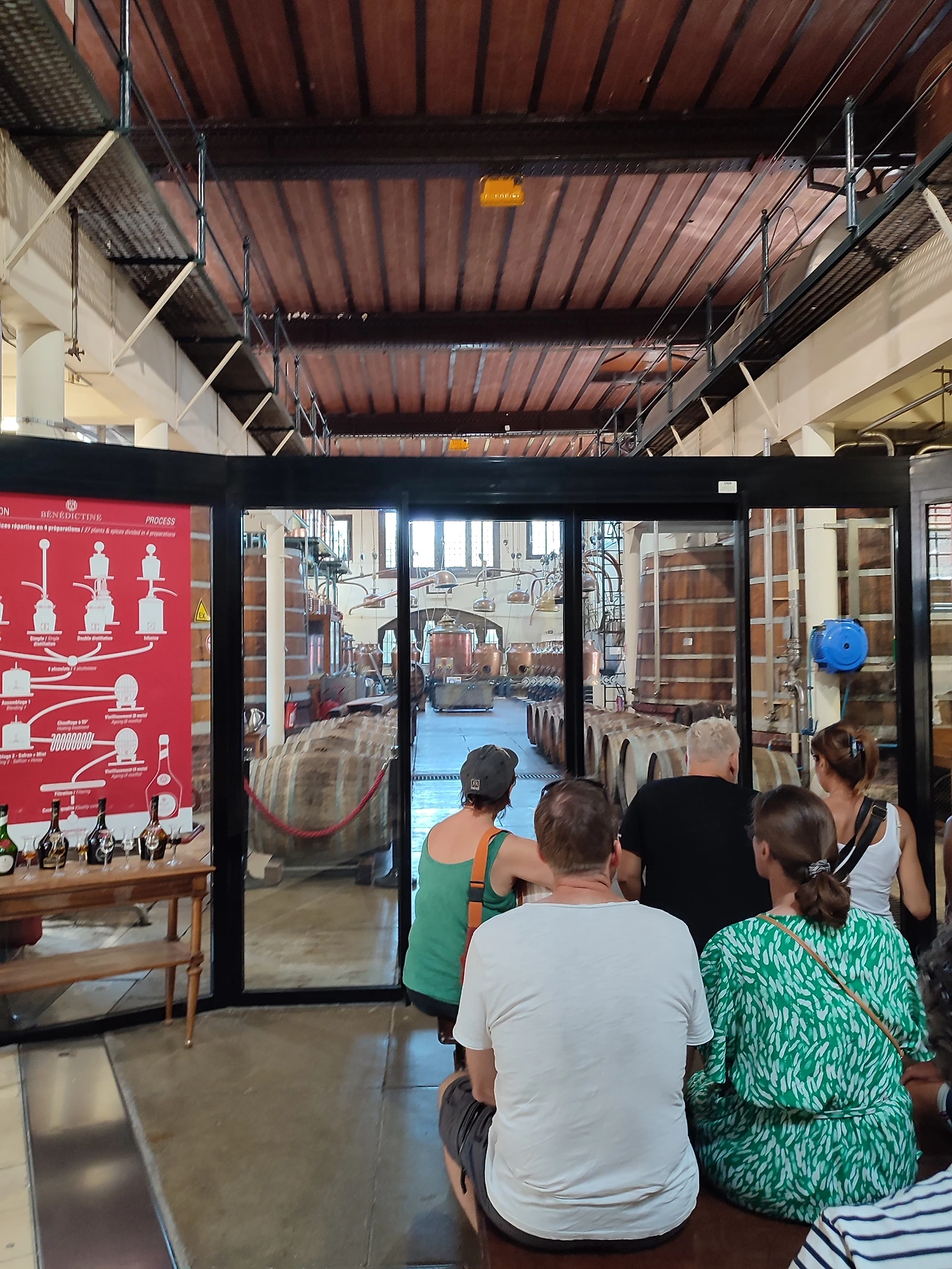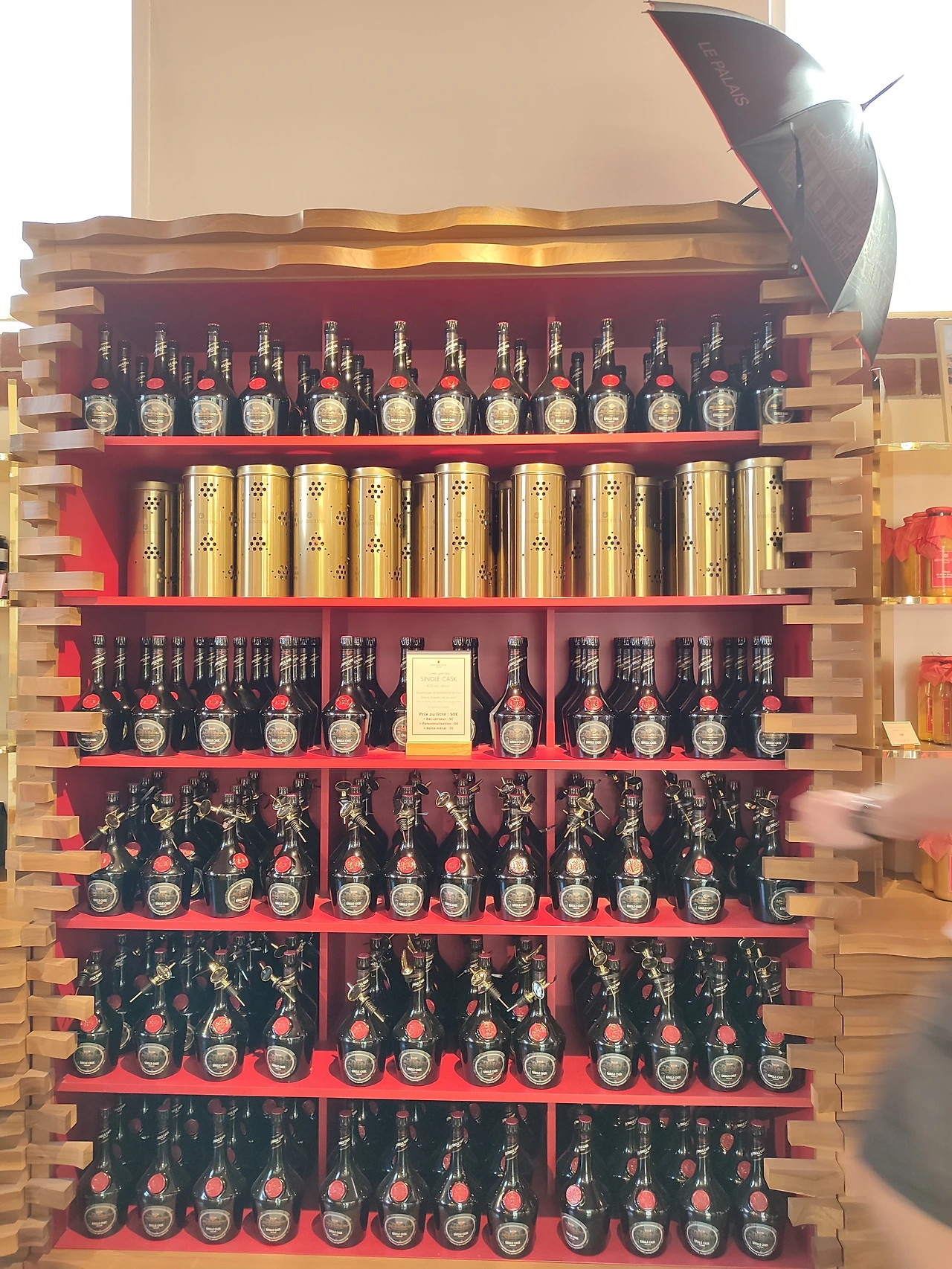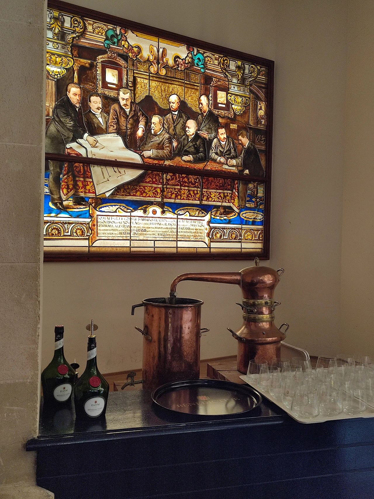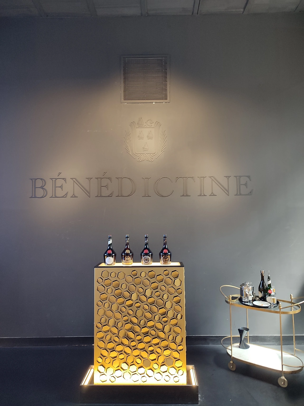 왼쪽의 첫 번째 잔이 베네딕틴 오리지널. 와인처럼 잔을 돌리지 말고 그냥 마시라고 한다. 가이드는 술을 마시지 못하는 사람들을 위해 시럽물을 제공했다.