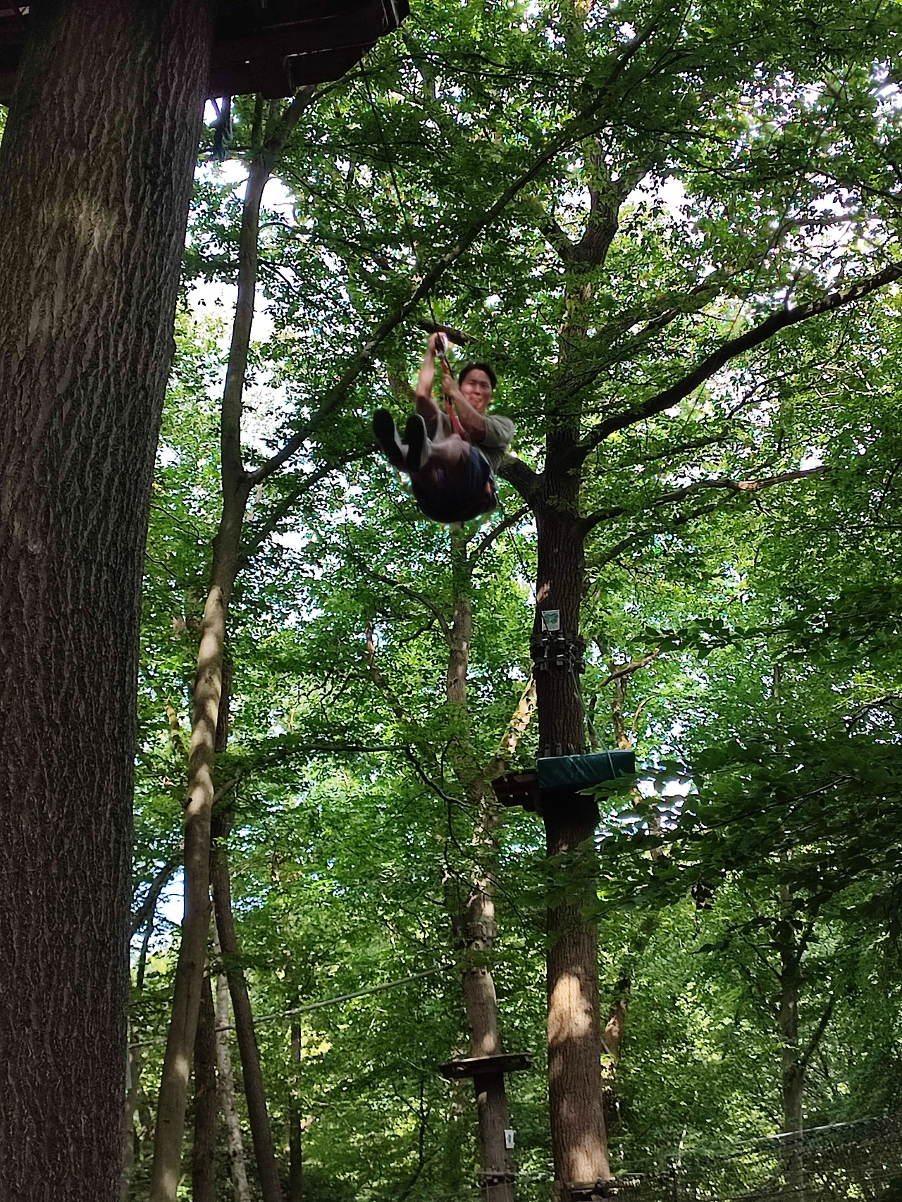 이곳으로 오기 전 루앙(Rouen 후엉) 근처 아크로 브렁쉬 Accro Branche 라고 숲 속 장애물 경기를 하는 곳에 들렸었다. 그때 너무 재밌었는지 돌아가는 날도 또 들려서 놀다 갔다. 재밌는 건 25년 군인이었던 남편이 처음으로 자기 돈을 내고 장애물을 경기를 했다는 점이다.