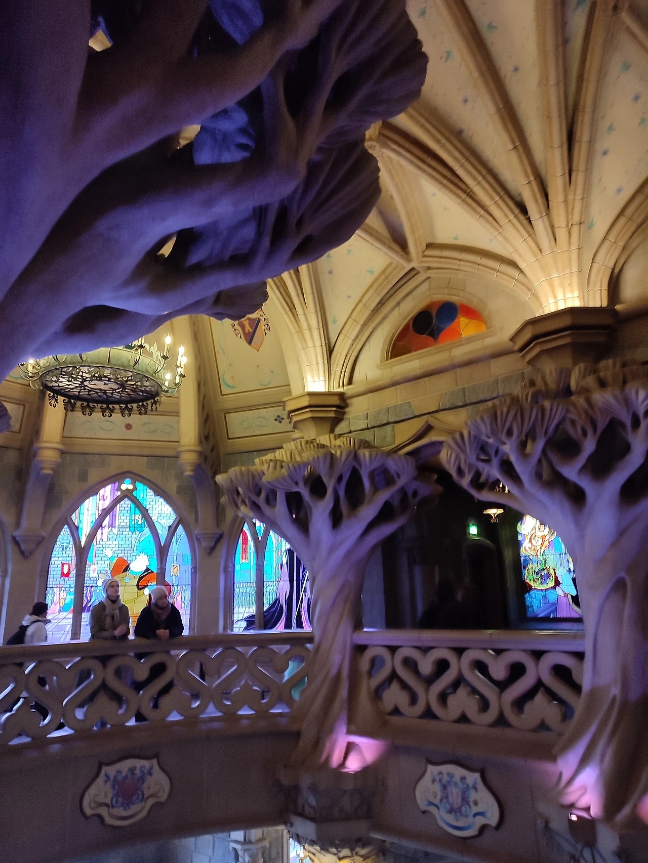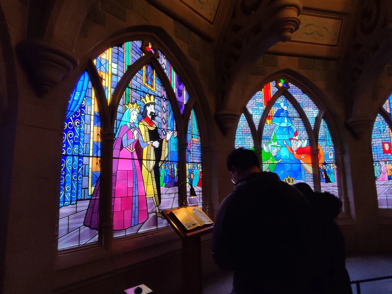 디즈니 성 안으로 들어가면 2층에 모자이크 창문이 있다.