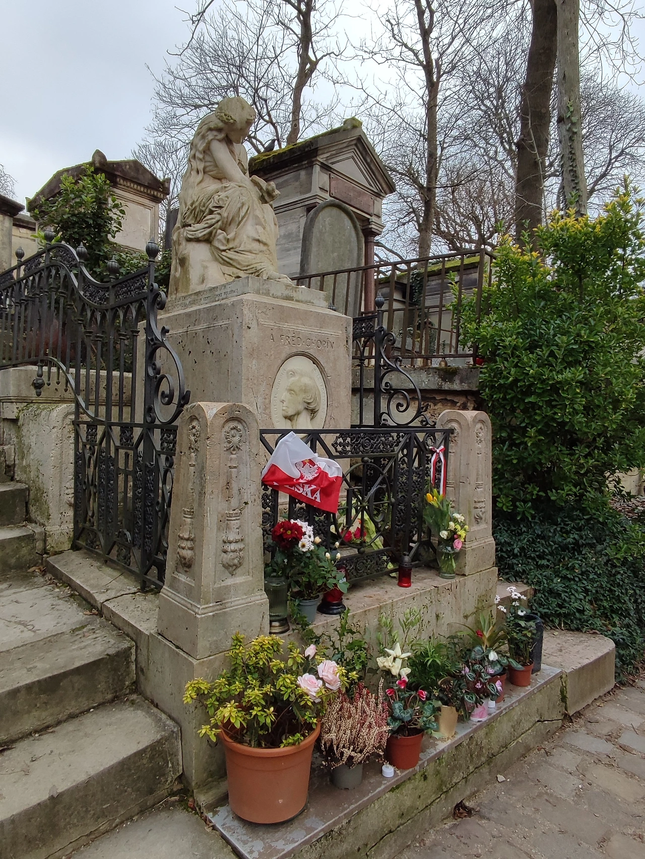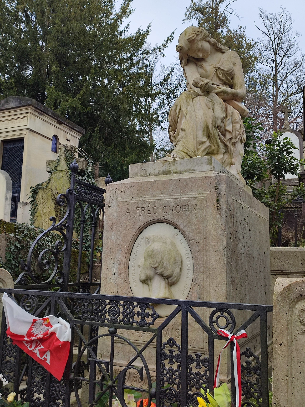 프레데릭 쇼팽의 묘 앞에는 폴란드의 국기가 걸려있다. 그는 폴란드인으로 프랑스 국적을 취득했다.
