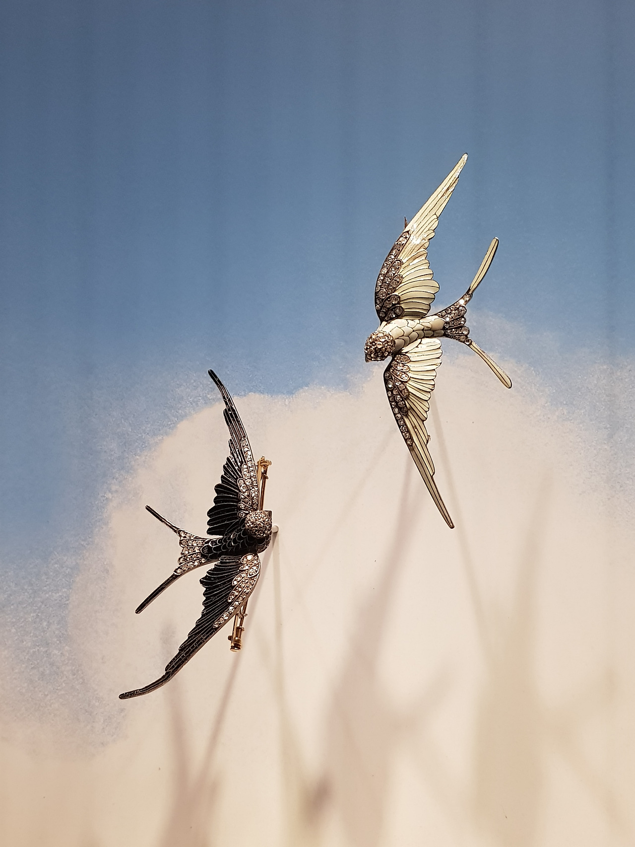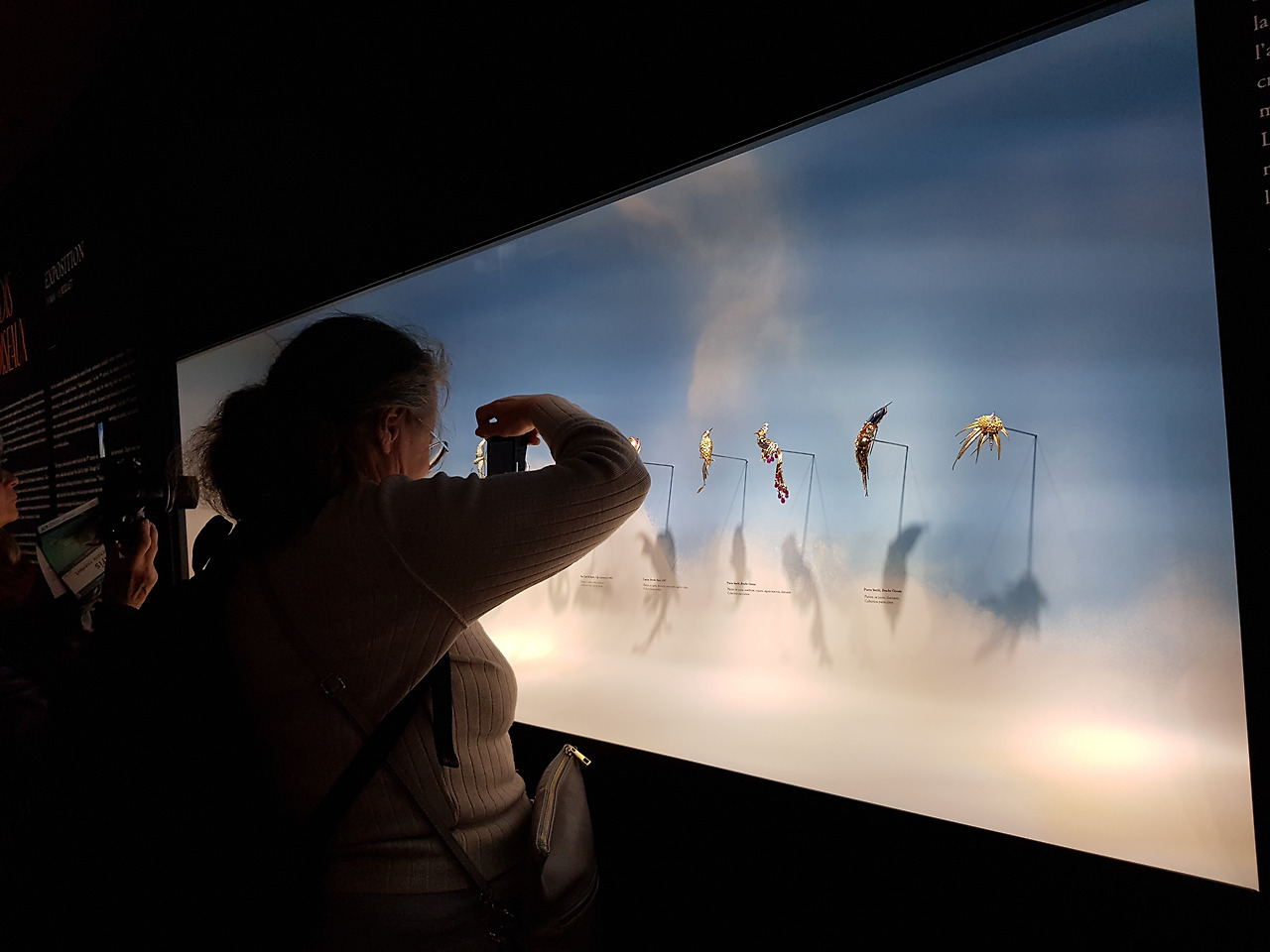 이 브랜드가 고가인 이유는 장인이 손으로 하나하나씩 만들기 때문인데 작품을 직접 보면 표현력이 정말 예술이다. 그리고 가격이 얼마나 고가 일지.. 분명 브로치 하나에 몇천만 원 할 텐데 저 비싼걸 어떻게 착용하고 다닐 수 있을지.. 이 전시회장에 보완 요원이 엄청나게 많았다. 물론 아저씨들이 내 사진까지 찍어줄 정도로 친절했지만 덩치 큰 아저씨들이 계속 부산하게 움직이고 있었다. 이거 털리면 진짜 난리 난다.