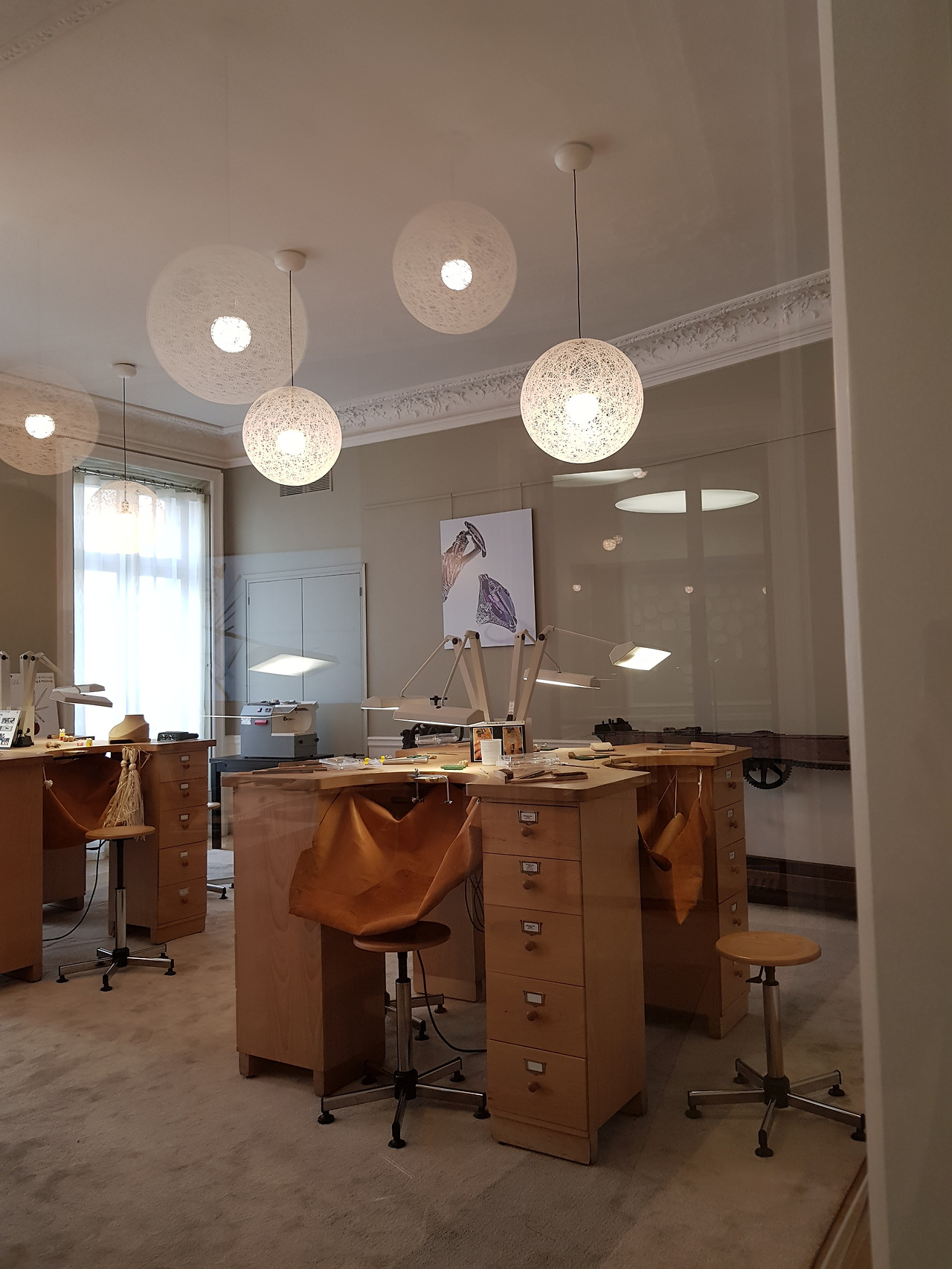 나는 전문인 양성학교인 줄 알고 가이드에게 입학하려면 어렵냐 입학하려면 포트폴리오를 제출해야 하냐 물었더니 가이드의 대답이 대중에게 열린 문화센터 같은 곳이라고 한다. 신청만 하면 4시간 수업받고 가는 거라고. 학교 안내 책자를 보니 어린이 수업도 있었다. 내가 가이드에게 반문하길 그럼 수료증이나 어떤 인증서가 없는 거네? 전문학교로 가야 한다고 조언한다. 이 학교는 아마도 이 브랜드를 알리고자 하는, 주얼리 산업을 대중에게 더 전파하고자 하는데 목적이 있는 듯했다. 그렇다면 오늘 이 전시는 홍보를 위해 아주 탁월한 방법이었다.