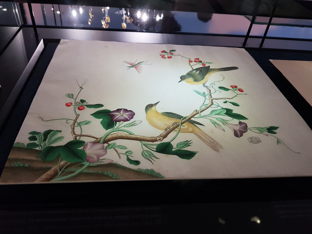 전시회장에는 제품과 1800년대 일본인과 중국인이 그린 그림들을 수집해 놓았고 색채가 강한 그 그림들을 토대로 작업을 했다고 한다. 이 브랜드의 자연을 주로 모티브로 하는데 우리에게 친근한 네 잎 클로버 디자인. 새. 강아지. 나비. 고양이 등을 디자인한다. 이번 전시회 주제는 "새"였다.