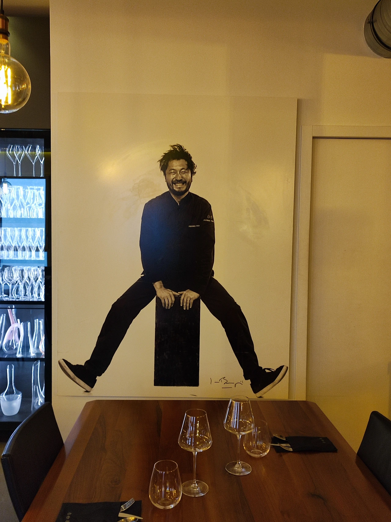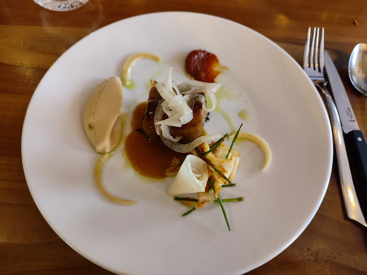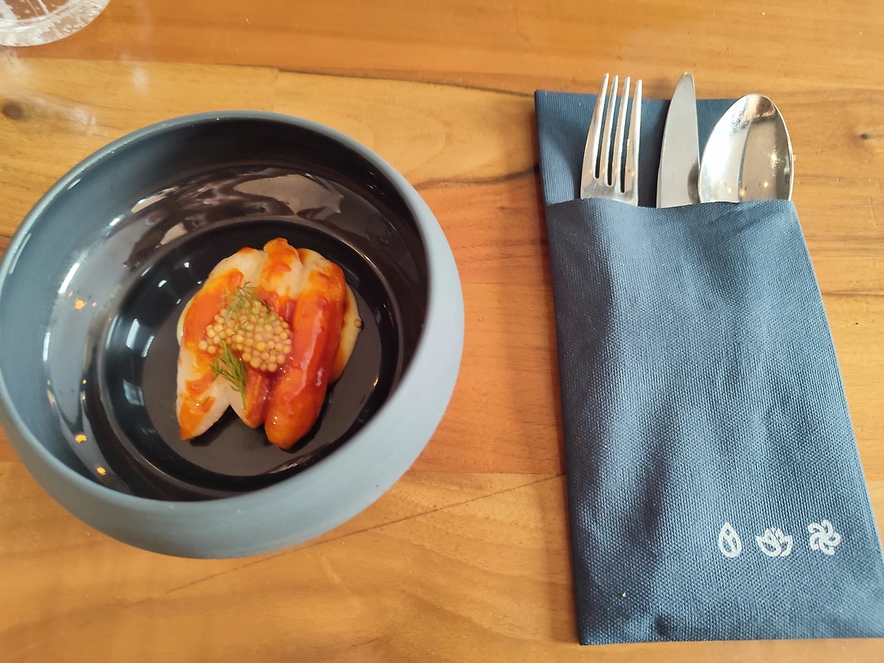 이날은 전식으로 떡꼬치와 살짝 말린듯한 생선회가 나왔다. 사실 우리는 깜짝 놀랐다. 58유로 메뉴에 떡꼬치라..