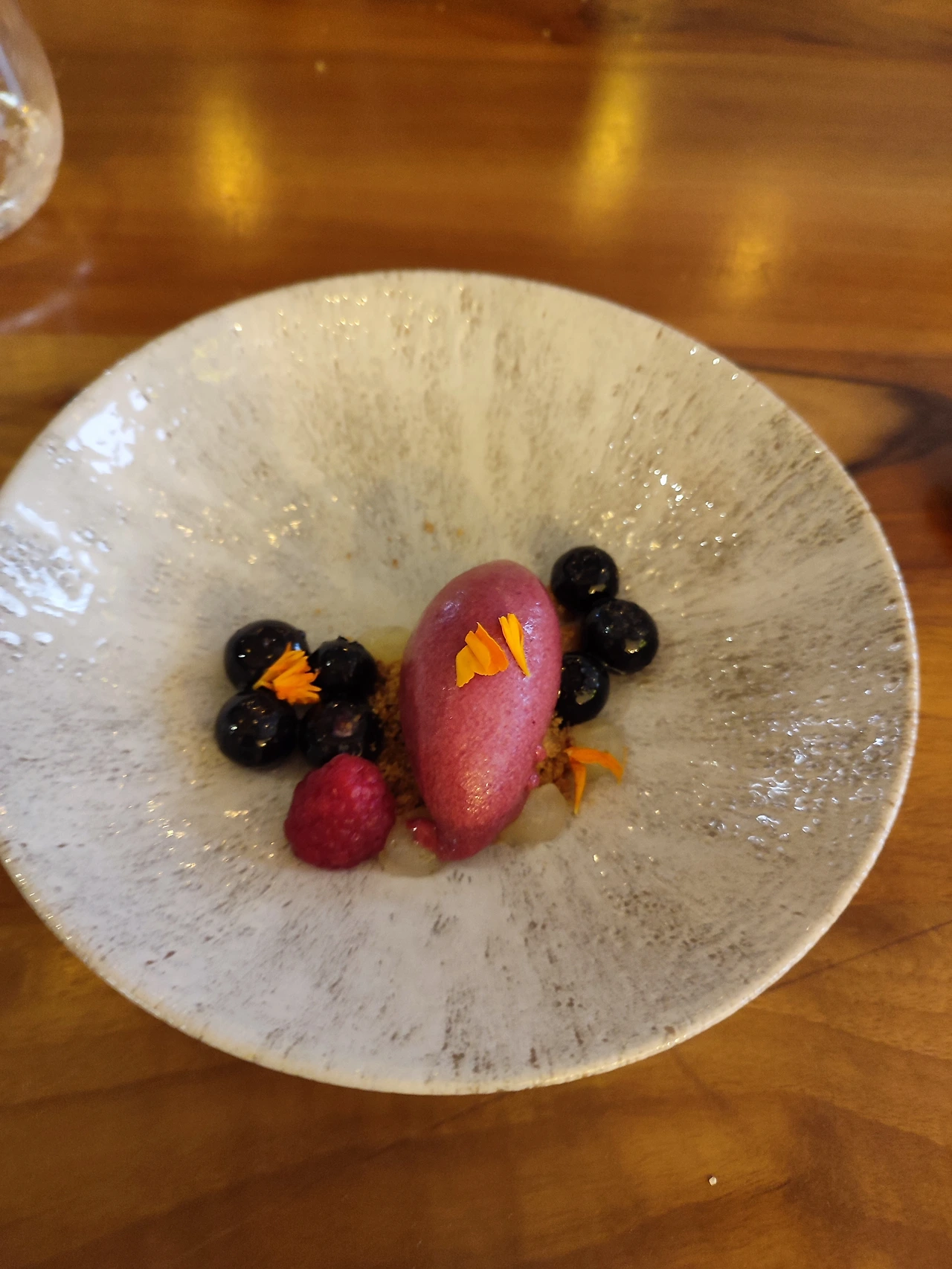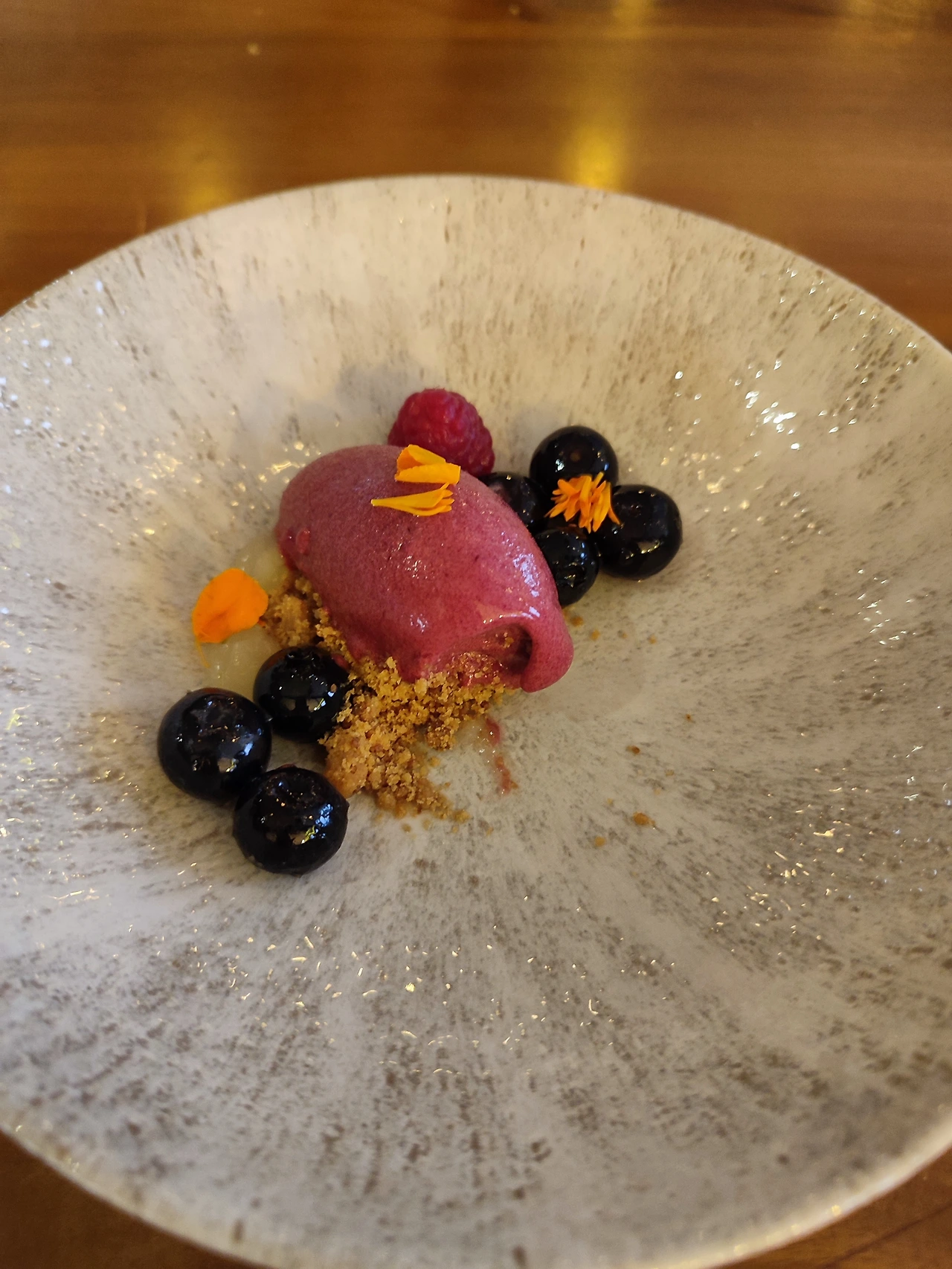 마지막 디저트는 복분자 샤베트였다. 마무리를 아주 깔끔하게..