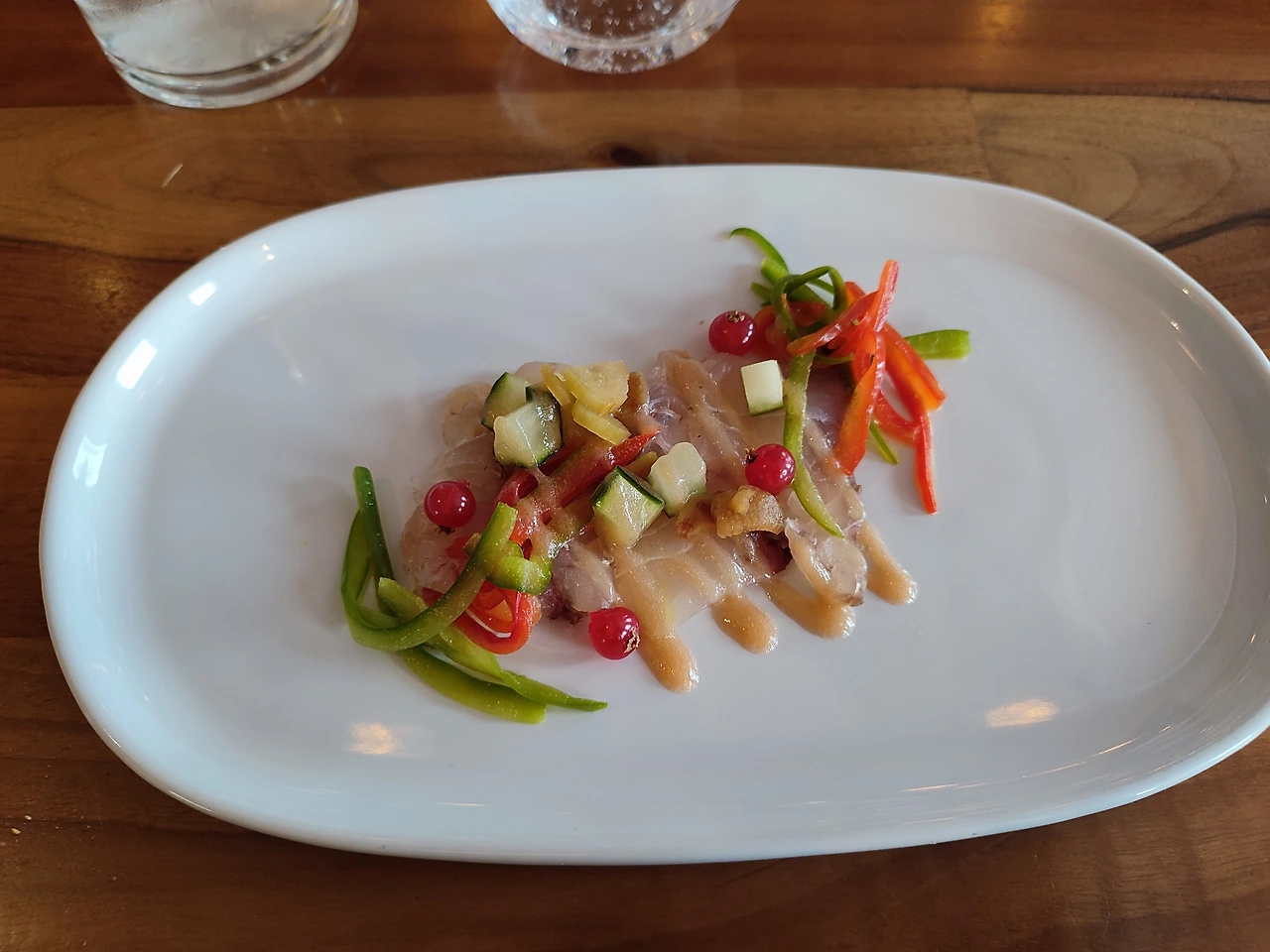 살짝 건조한듯한 쫀쫀한 생선회. 한입 씹었는데 두꺼운 가시가 잇몸을 찔러서 깜짝 놀랐지만.. 맛있었다.