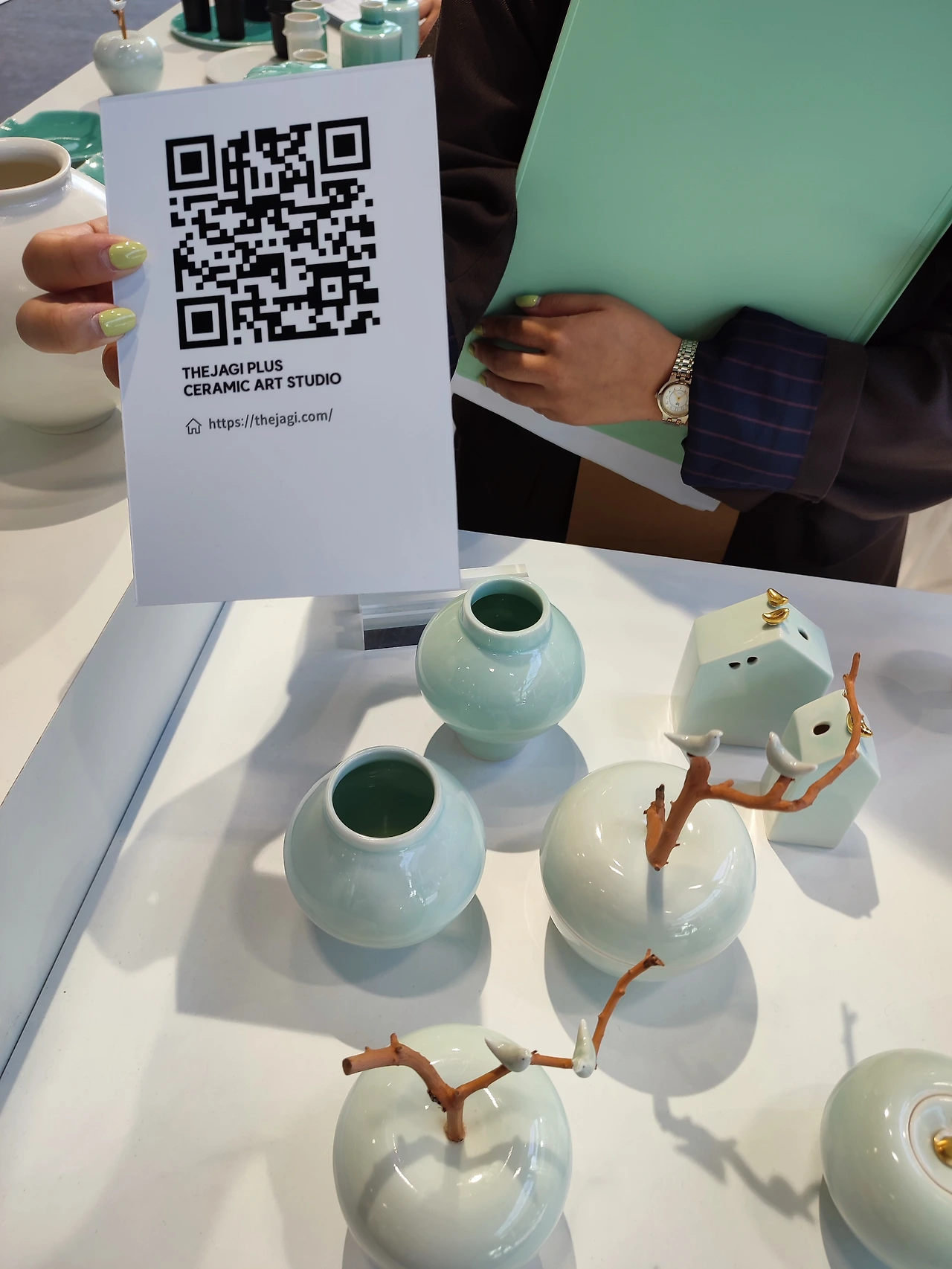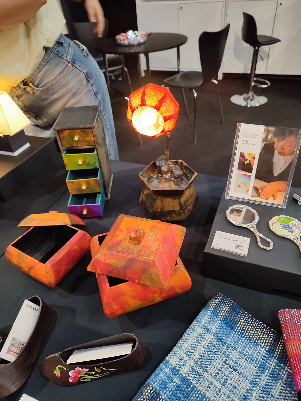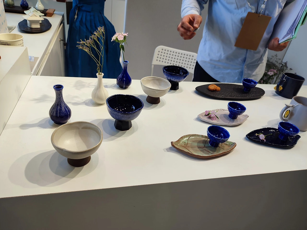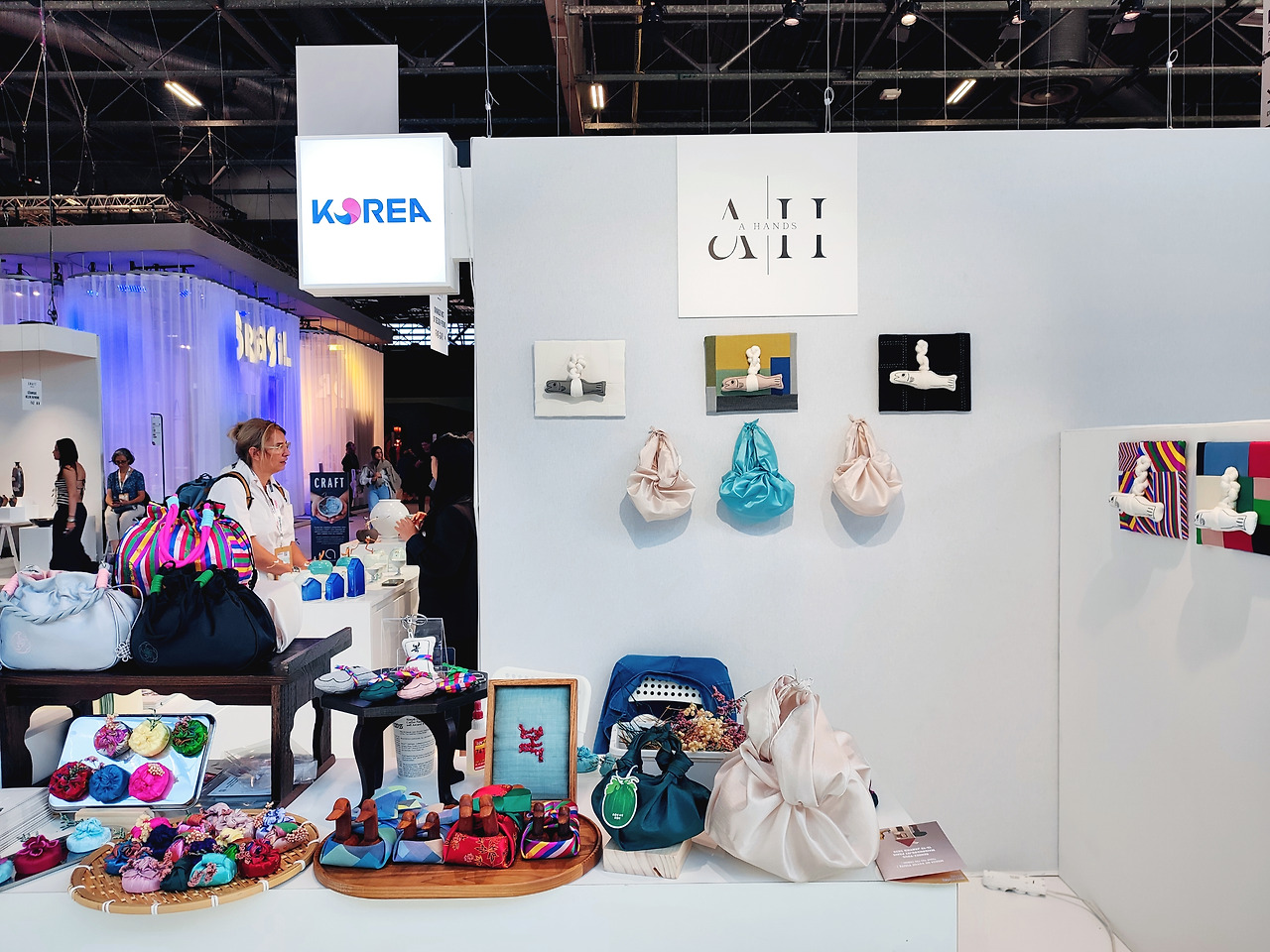 나는 A-Hand 대표님께서 초대장을 주셔서 무료 입장했다. 대표님이 계시는 5홀 건물로 갔다. 전시해 놓은 물건이 이미 다 예약 판매되었다며 무언가를 계속 만들고 계셨다. 나는 이날 하루 종일 5홀과 7홀을 몇 번씩 오가며 수많은 부띡을 보았지만 내 눈에는 임 대표님 작품이 가장 눈이 띄었다. 이쪽 부스에서는 광주에서 오신 선생님들의 현대적인 작품을 볼 수 있었다.
