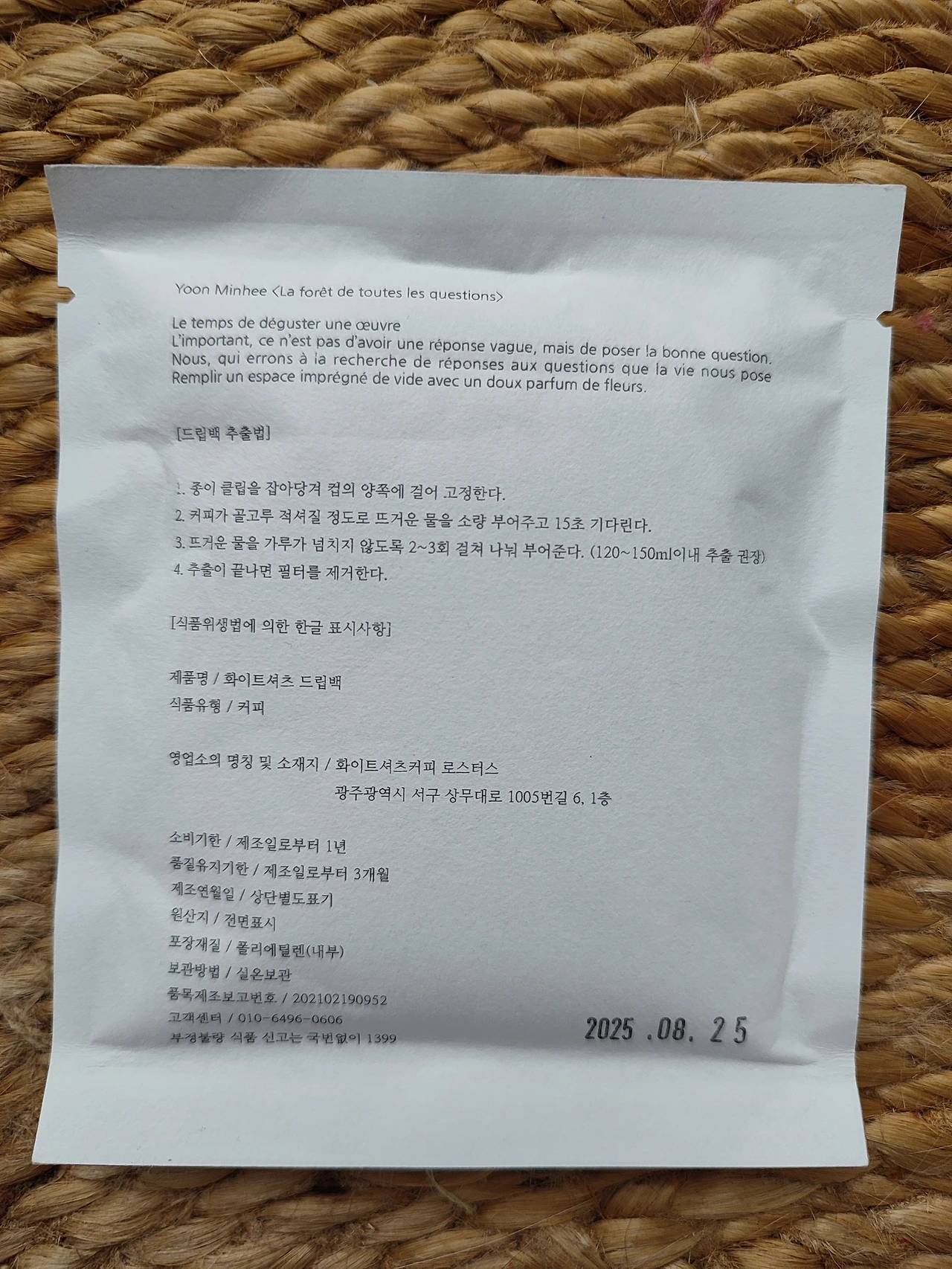 선물 받은 커피 뒷면에도 작품 설명이 불어로 적혀있었다.