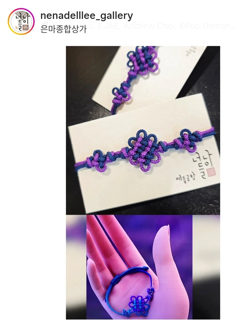 매듭공방 '너나들이'를 운영하는 친구는 데몬 헌터스 덕분에 너무 바쁘다고 한다. 매듭 팔찌가 국립 중앙 박물관에서 뮷즈로 판매되는데 매주 몇 백개씩 솔드아웃돼서 그거 만드느라 정신이 없다고, 또 개인 공방 상품들까지 동이 난데다 출강도 꽉 차서 몸이 100개라도 부족하다고 한다. 바쁘다니 공예가들에겐 희소식이다.