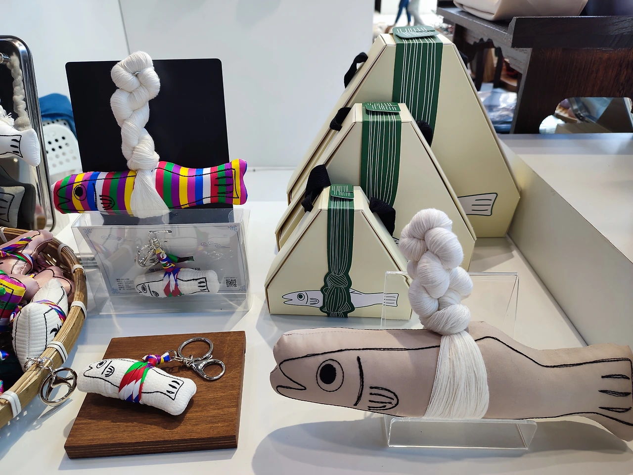 액막이 명태 키링. 제품설명은 파리에서 활동하는 강상미 작가님이 해주셨다. 눈이 빨개서 여쭤보니 엄청 피곤하시다고.. 그도 그럴 것이 현재 한국에서 작가님 전시가 진행 중이다.