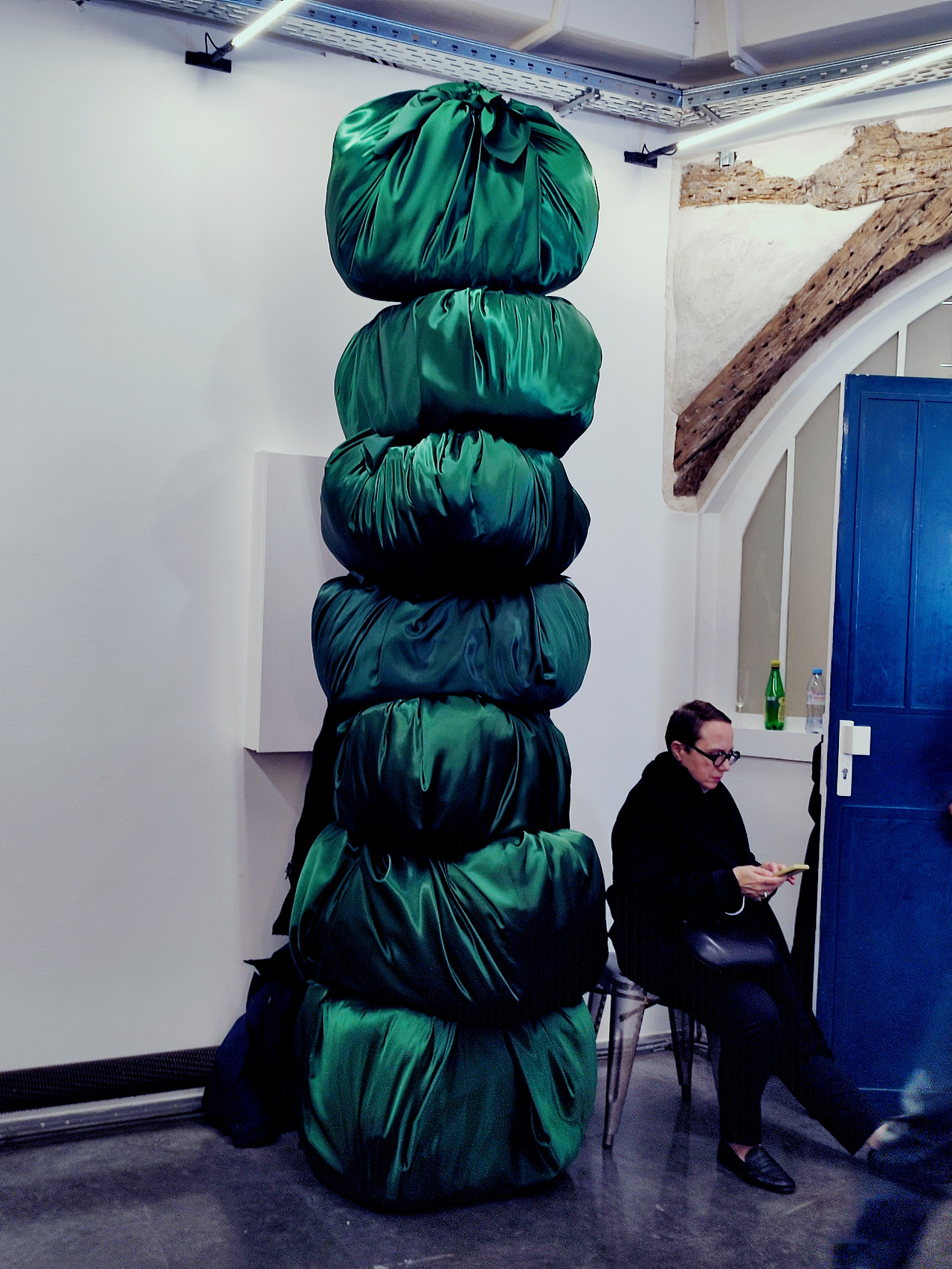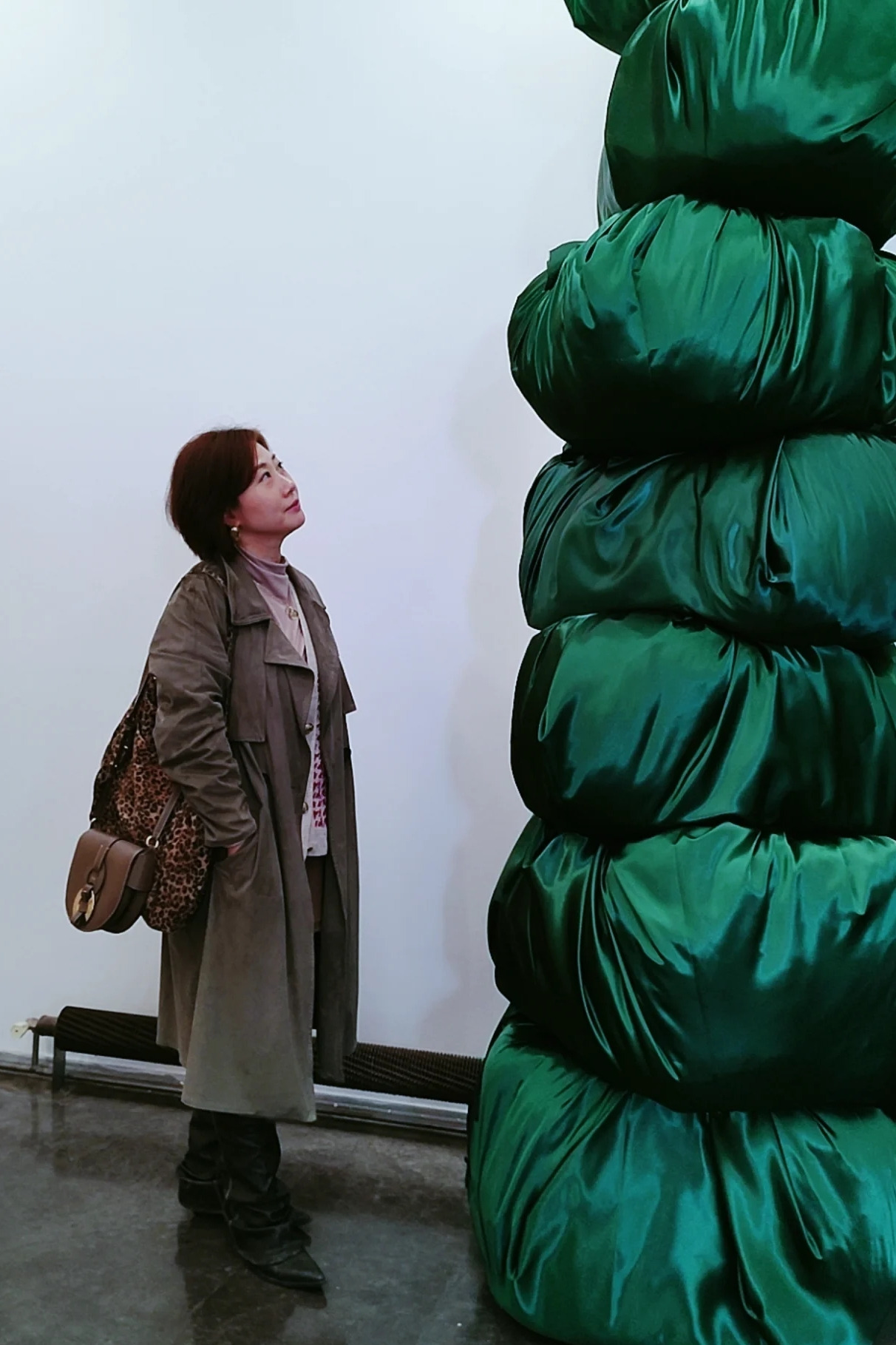 행사장 안에는 보자기 설치 미술이 전시되어 있었다. 순간 몇 년 전, 피노 컬렉션에서 본 김수자 님의 전시가 떠올랐다. 커다란 보자기 꾸러미가 흰 벽면을 채우며 한국의 전통적 느낌을 주었다.