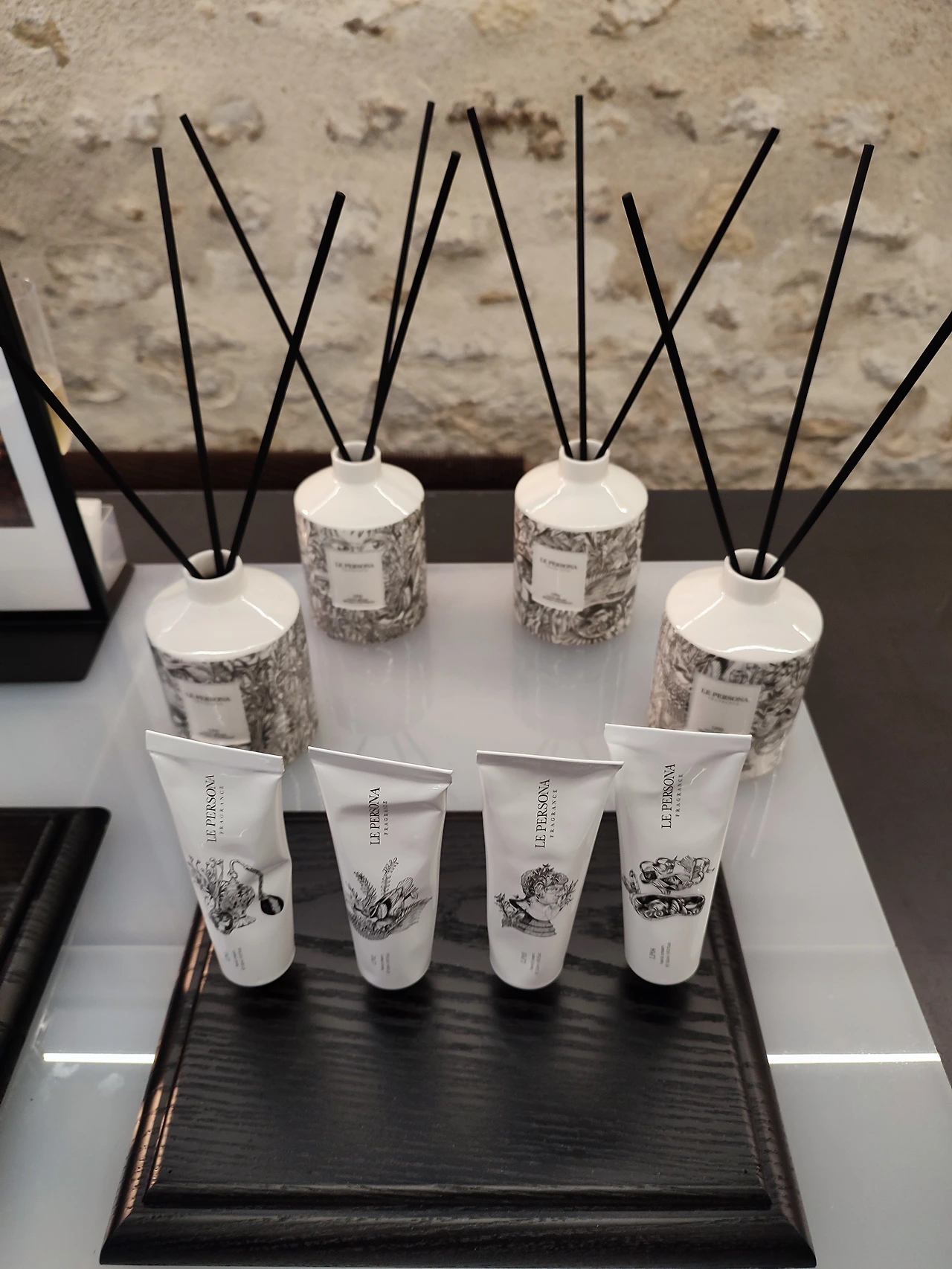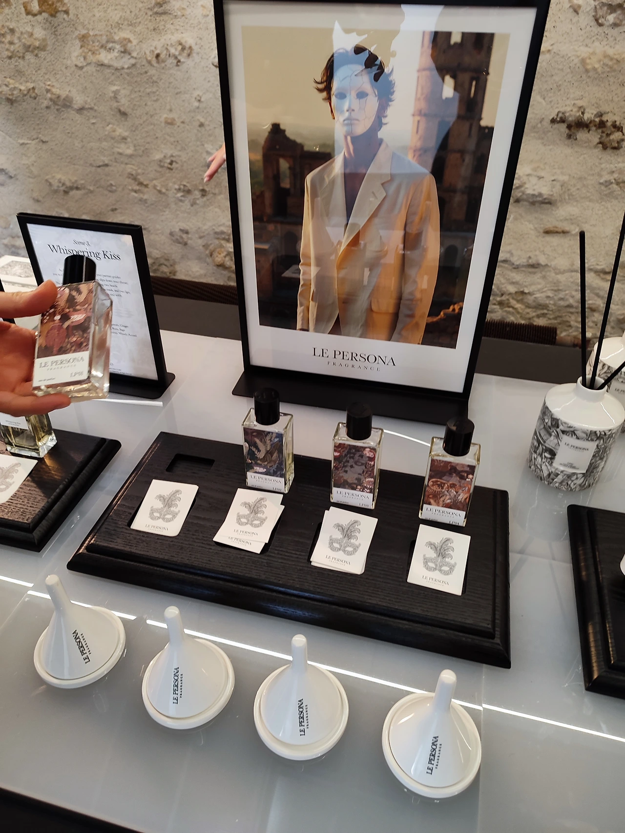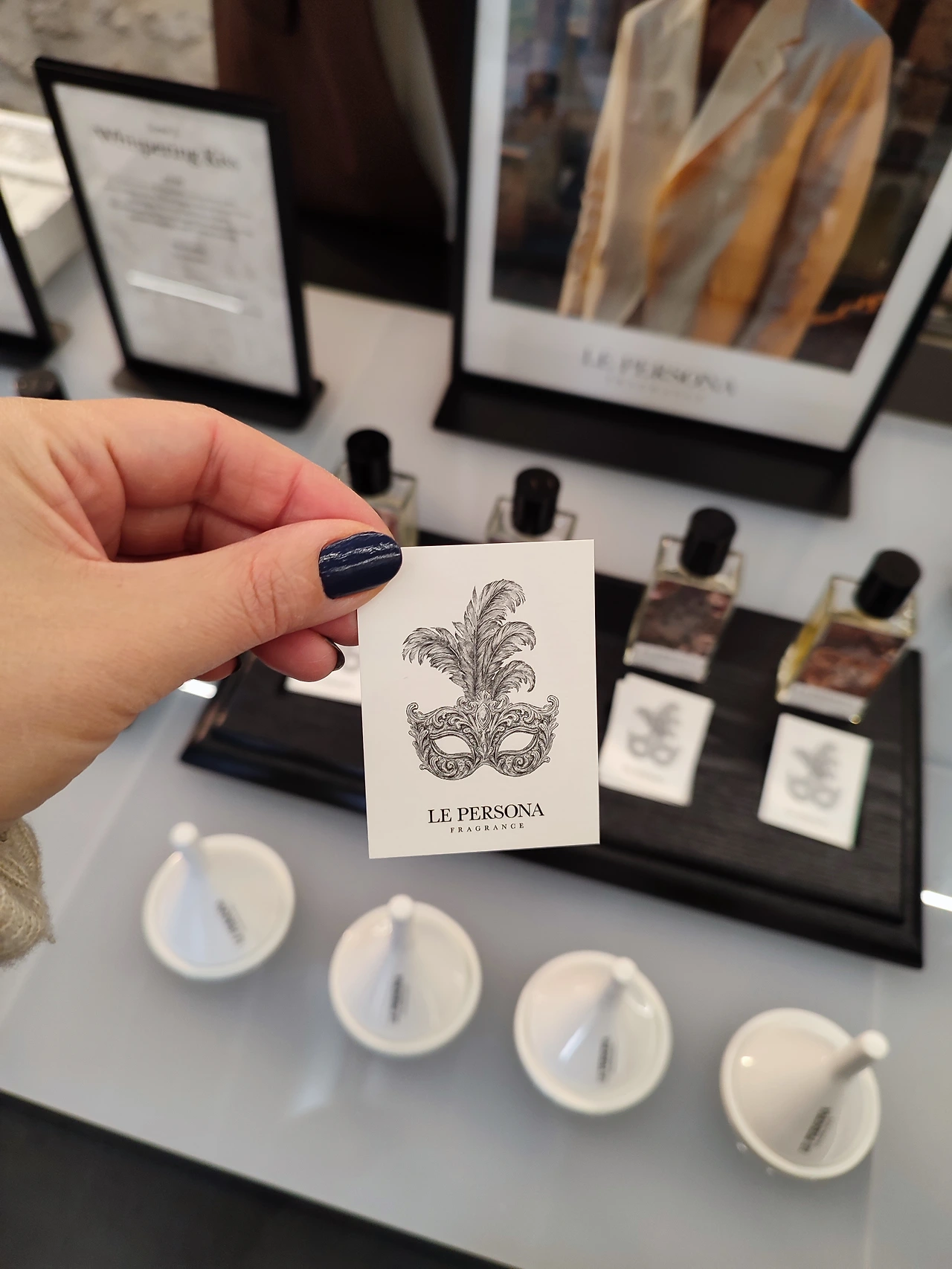 LE PERSONA는 ‘페르소나(가면)’에서 영감을 얻은 브랜드이며 가면 속 숨겨진 매력의 향을 자기를 표현하는 하나의 도구로 사용한다는 스토리를 가지고 있다. 각 향수마다 그림이 담겨 있고 스토리텔링 후에 그 이야기에 맞춰 향수를 제작한다고 한다.