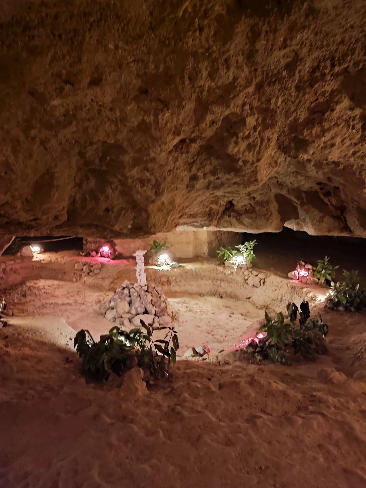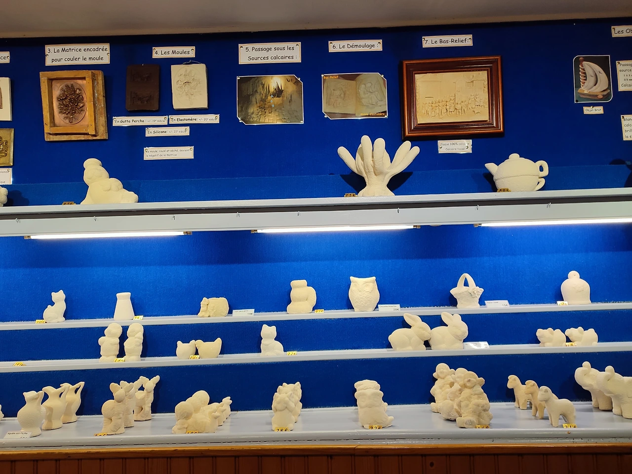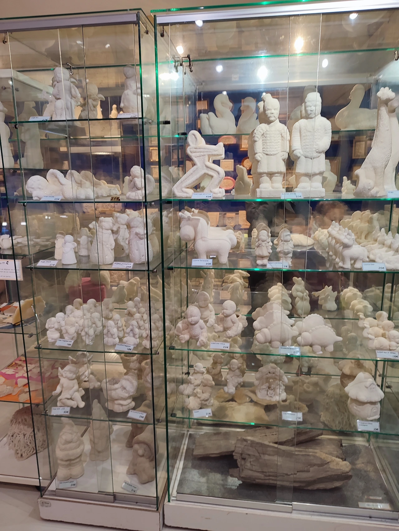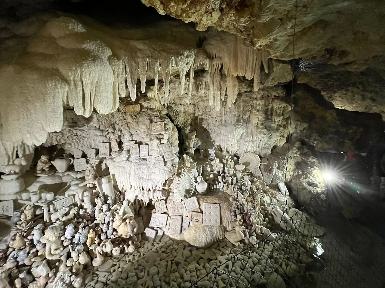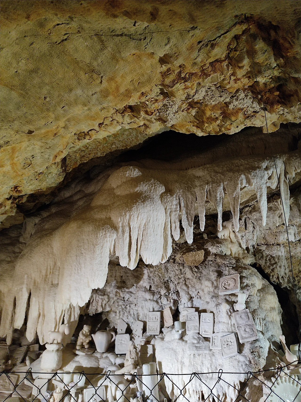 동굴에서 나온 석회를 틀에 넣어 지역의 장인이 만든 조각품을 동글 속에 전시해 놓았다. 기념품 샵에서 구매도 가능했다.