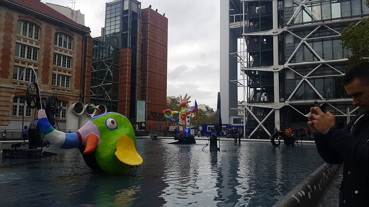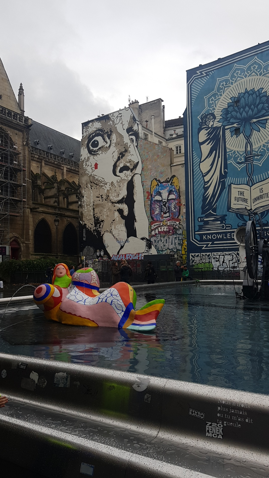 파리가 작아서 퐁피두센터를 가더라도 주변 아무 지하철 역에 내려 걸어가면 되는데 나는 파리 시청역 Hotel de ville 에서 내려 스타라빈스키 분수대로 걸어갔다. 2005년 배낭여행 때, 2012년 아들을 유모차에 태워 함께 오기도 했지만 분수대는 보지 못했다. 그동안 유명하다는 분수대 조형물들도 궁금했고 올 때마다 보지 못했던, 안타까움도 있었다. 그래서 더 궁금했다. 분수대를 보는 순간 허탈한 웃음이 나왔다. 별것도 아닌 게 왜 그리 궁금해했을까. 날씨라도 좋았다면 아이들이 즐겁게 뛰어놀아 좋은 추억이라도 남았을 텐데 땅이 젖어 있어 안타까웠다.