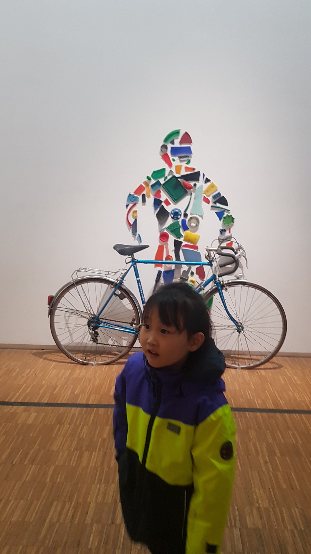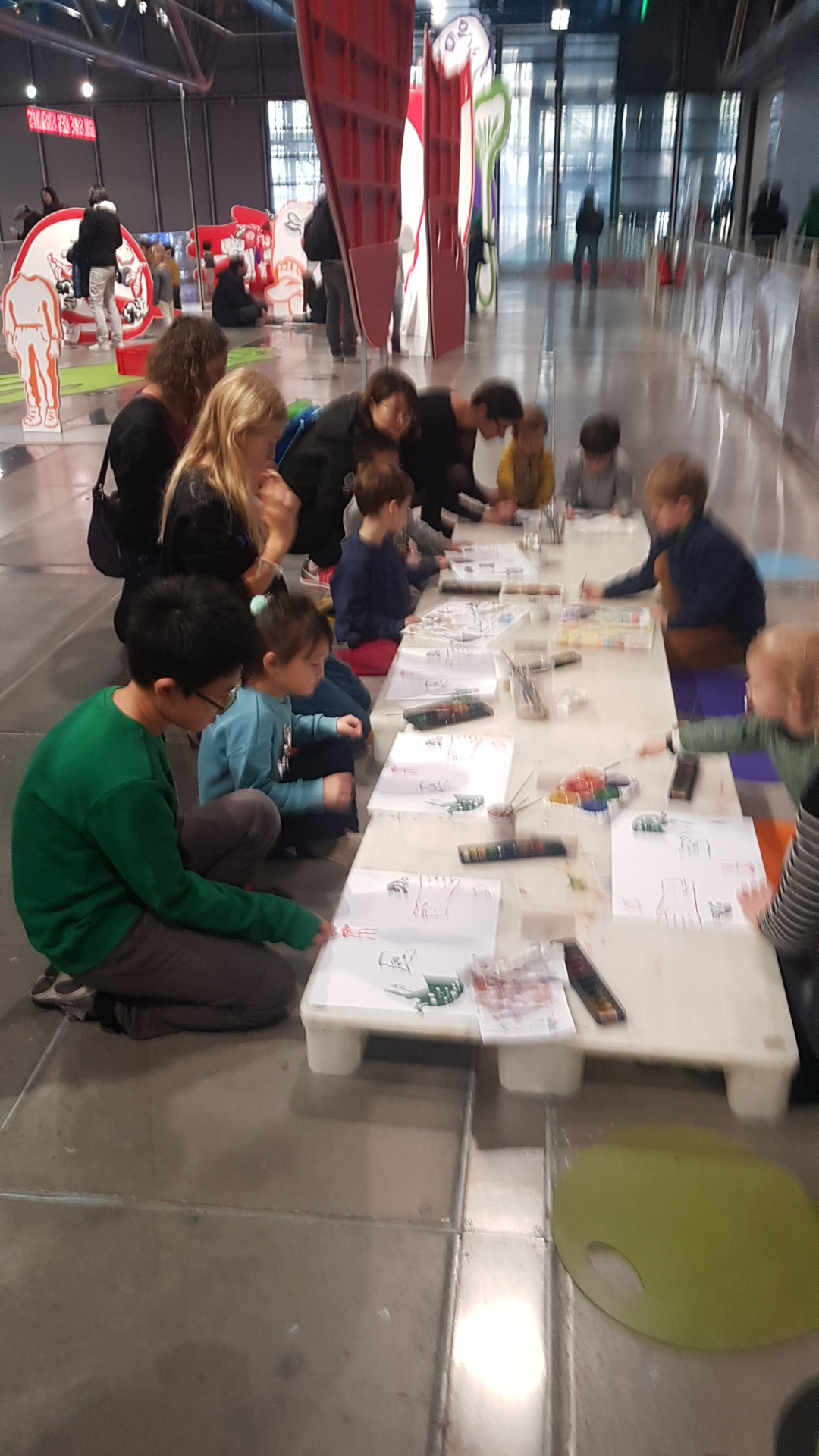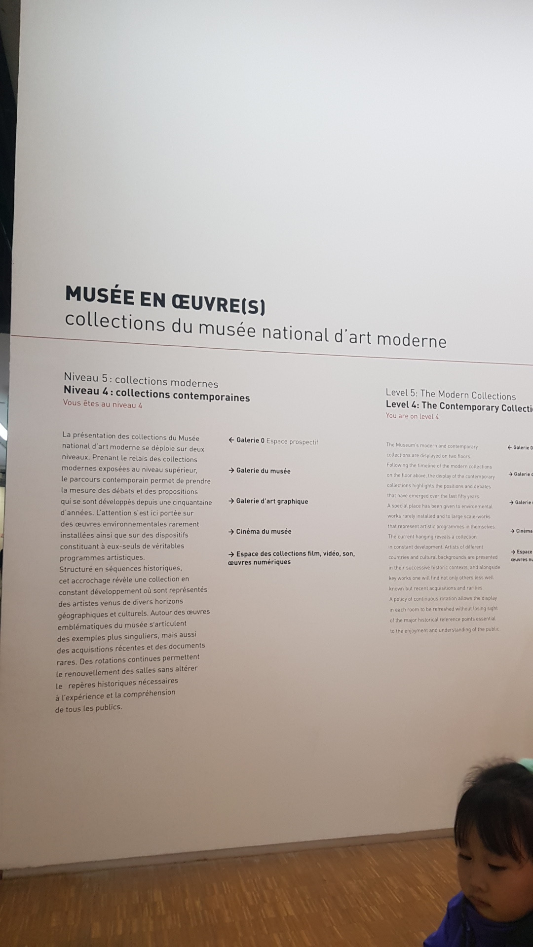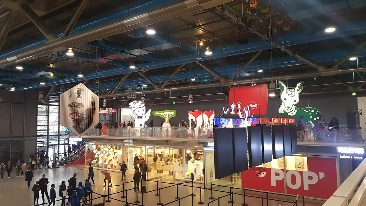 바로 옆에 위치한 퐁피두센터로 향했다. 대기줄이 엄청 있었음에도 불구하고 아이들이 있어서 줄을 서지 않고 바로 입장했다. 제일 처음 간 곳은 어린이 공간. 전시 중인 작가의 책도 보고 책 안의 내용을 그림으로 그리는 시간도 있었다. 아이들은 계속 놀기를 바랐지만 30분만 머물다 나왔다. 이곳에서 한국 아이들이 있었는데 한국말이 들리자 우리 아이들이 신기해했다. 파리엔 한국사람들이 많으니 말을 조심히 해야 한다고 주의를 줬다.