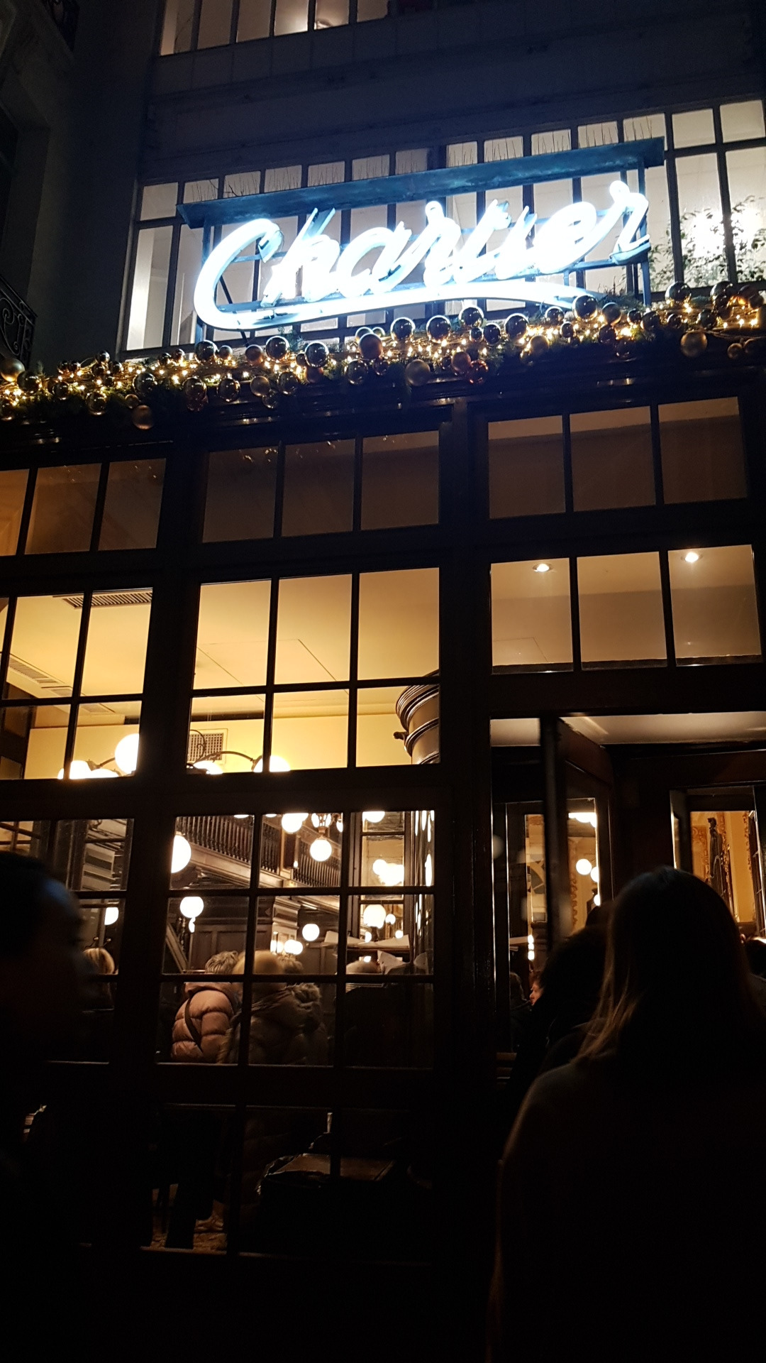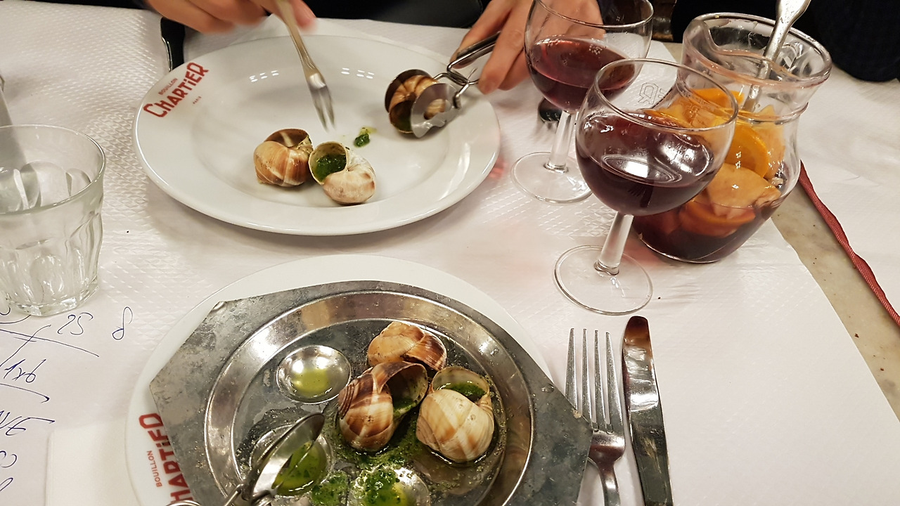 전망대에서 내려와 구글 검색을 했다 근처 지하철 역 앞에 Bouillon Chartier 란 레스토랑이었다. 사람들이 엄청 많았고 가격이 저렴했다. 프랑스 서민들의 식당처럼 느껴질 만큼. 딱히 메뉴판이란 것도 없이 나이 많으신 서버들의 셔츠 주머니에서 몇 번 접힌 종이 메뉴판이 나왔고 주문 후 다시 셔츠 속으로 접혀 들어갔다. 빌지라는 것도 따로 없이 우리가 먹은 메뉴를 식탁 위 종이에 볼펜으로 써 내려가고 총 얼마라고 적어주었다. 인테리어나 분위기 가격 등 전체적으로 나는 만족하는 식당이었다.
