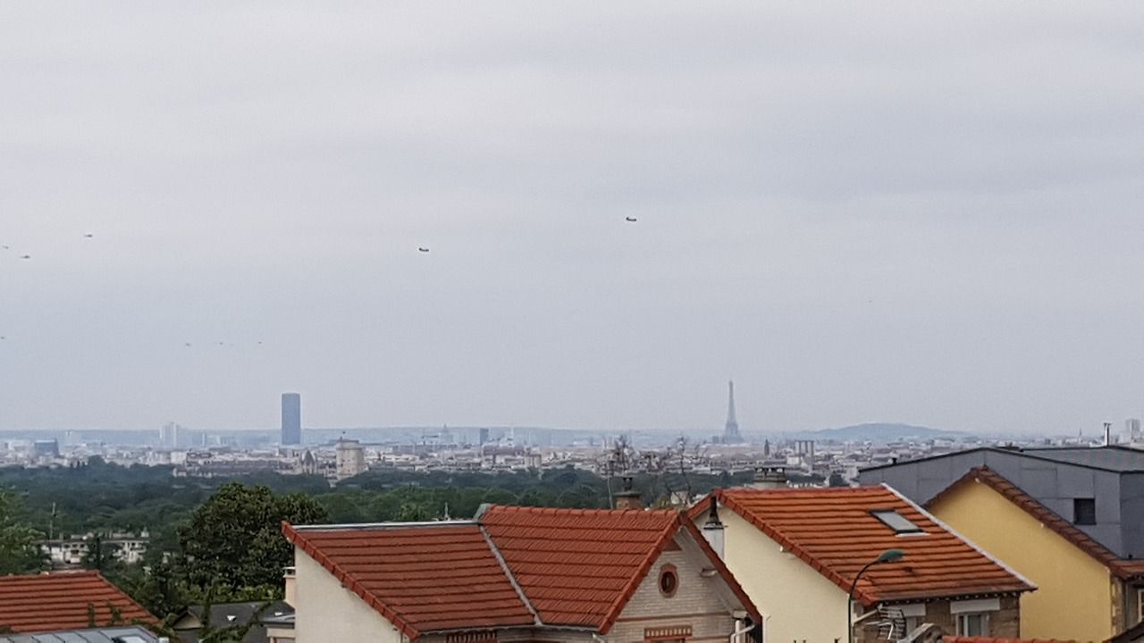 우리 집에서 바라본 파리 풍경. 제일 왼쪽 라데팡스부터 몽파르나스 타워, 오른쪽 애펠탑까지.