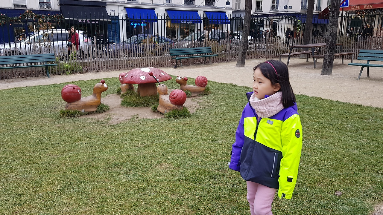 미술관 관람 후에 랍스터 샌드위치를 먹으러 가는 길. 아이들이 놀고 있는 공원Jardin de l'Hôtel-Salé - Léonor-Fini 이 있길래 들어갔다.