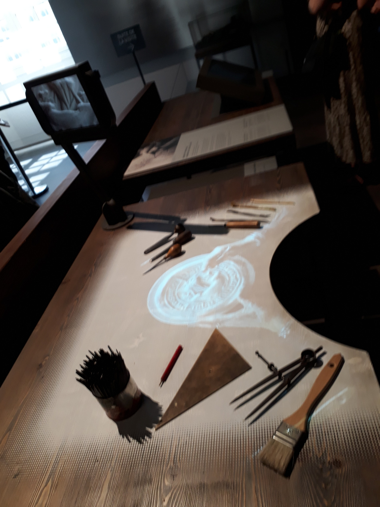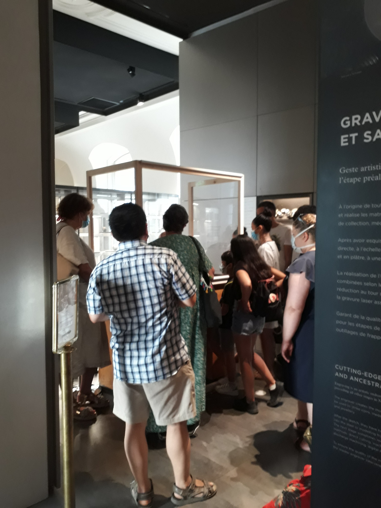 프랑스 조폐공사는 864년 설립된 프랑스 최초의 공공기관이며 여러장소로 이전하다가 1775년 파리에 자리 잡은 현재 건물이 마지막 아뜰리에가 되었다고 한다. 그래서 입구에 일부 기계와 함께 아뜰리에가 공개되어 있다. 그리고 동전 및 메달. 프랑스 및 각 지역의 동전뿐만 아니라 통킹 원정 때 베트남 왕이 프랑스에 지불한 금은보화 등의 외국 동전들도 전시되어 있었다. 동전 만드는 큰 틀을 직접 빔 프로젝트에 넣고 동전 모양을 볼 수도 있었고 옛날 방식의 망치와 현대 방식의 레이저 기계까지 한 곳에서 볼 수 있는 곳이었다. 파리답게 중세와 현대가 한 곳에 머무는 박물관이다. 한 그룹과 가이드가 보인다. 가이드가 자리에 앉아 직접 동전 만드는 수작업을 방문객들에게 보여주고 있었다. 일요일 오후 3시엔 가이드와 힘께 하는 프로그램이 있는데 8유로를 지급해야 한다고 사이트에 나와 있다. 아이들과 부모들이 함께하는 아뜰리에도 있고 다양한 프로그램이 있는 듯 했다. 나도 8월 말에 아이들과 함께 가려고 바로 사이트로 예약을 했다.