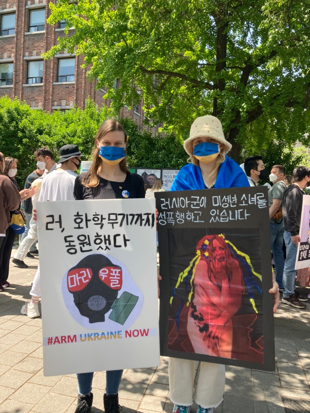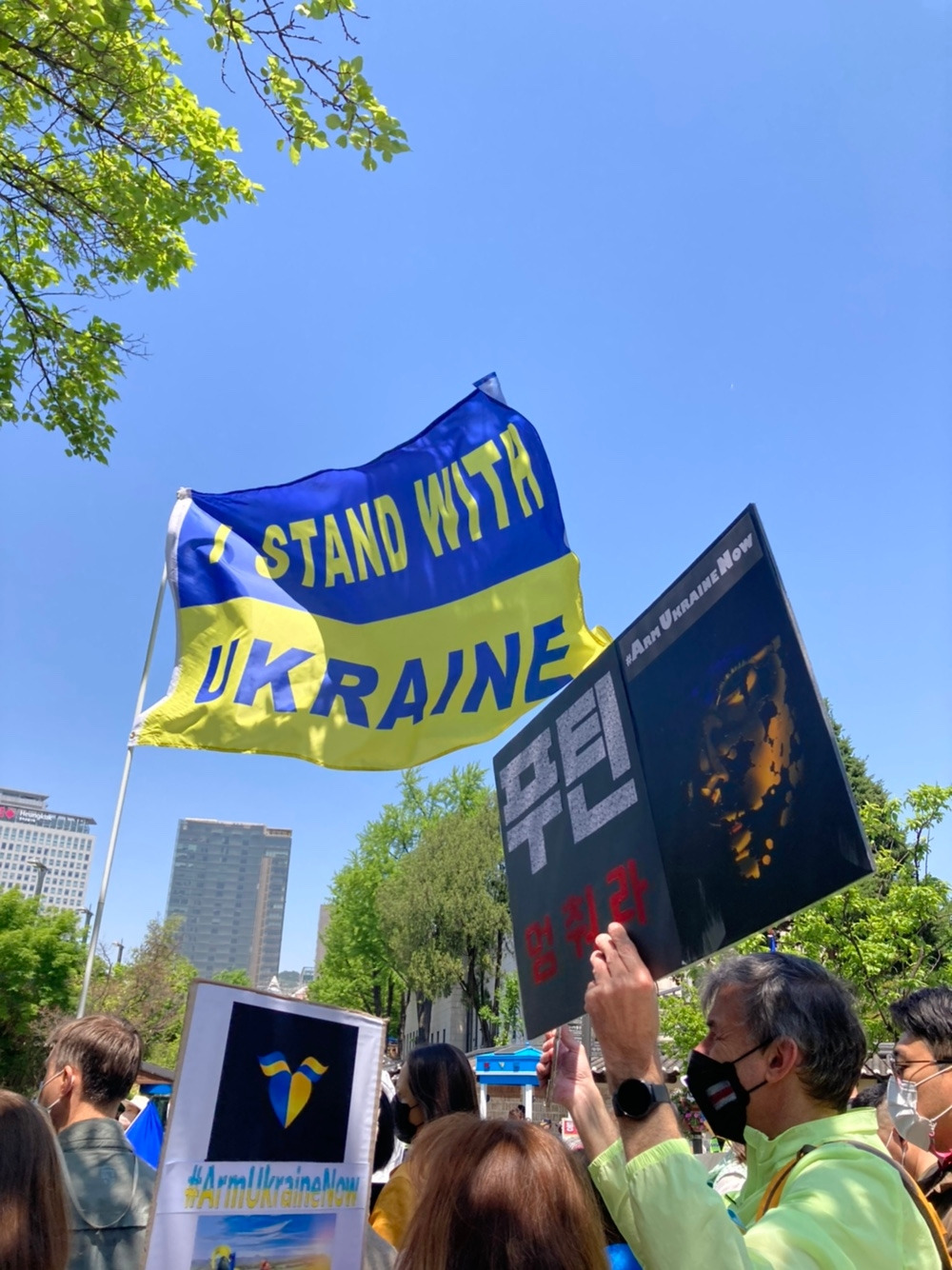 5월 1일 일요일 낮 12시, 덕수궁 돌담길. 푸른 나뭇잎이 따스한 햇살을 반사하며 바람에 실랑였다. 그늘진 길을 따라가자 우크라이나 노래가 울려 펴졌다. 노래를 따라 사람들이 하나둘씩 모였고, 그렇게 집회가 시작되었다.