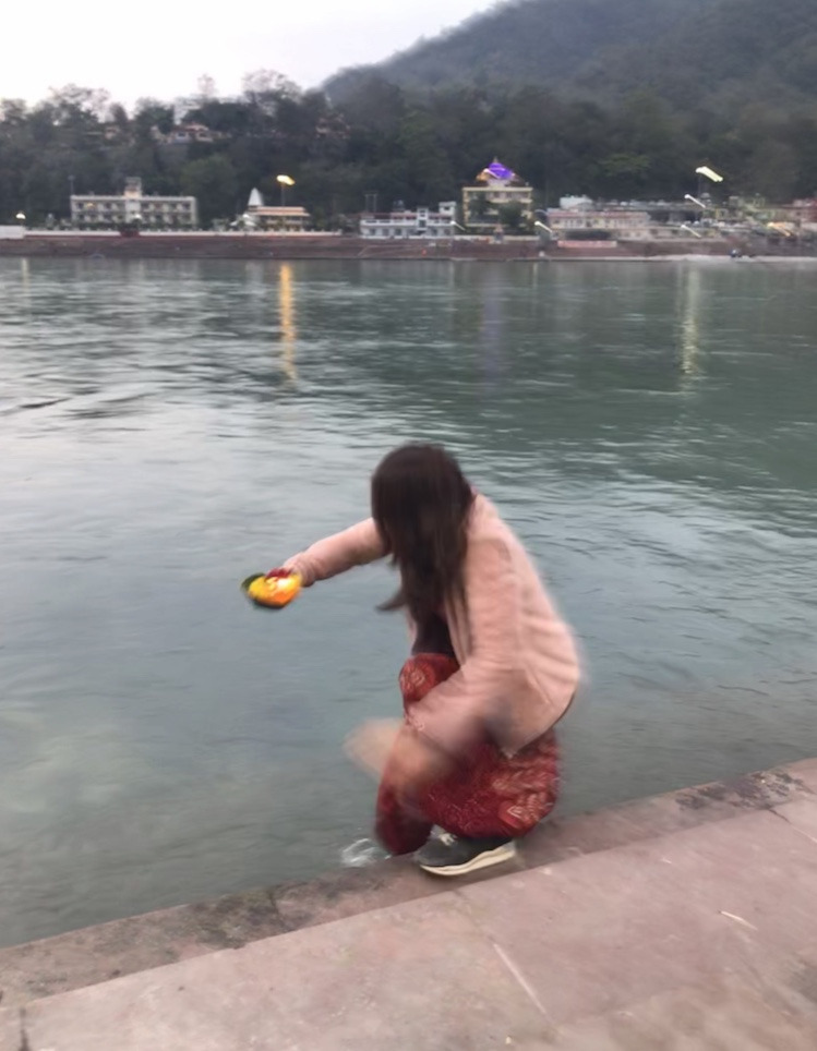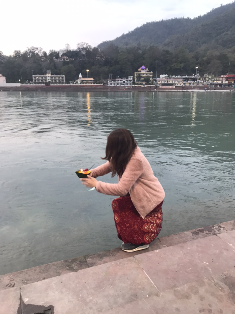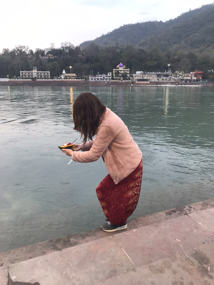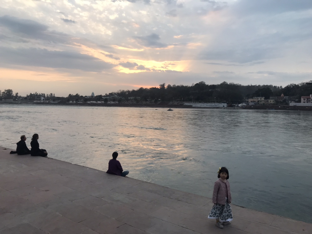 그리고 우리가 좋아하는 조용한 강가 쪽으로 걸었다. 여기 리시케시에 있는 동안 맘껏 소원을 빌기 위해.