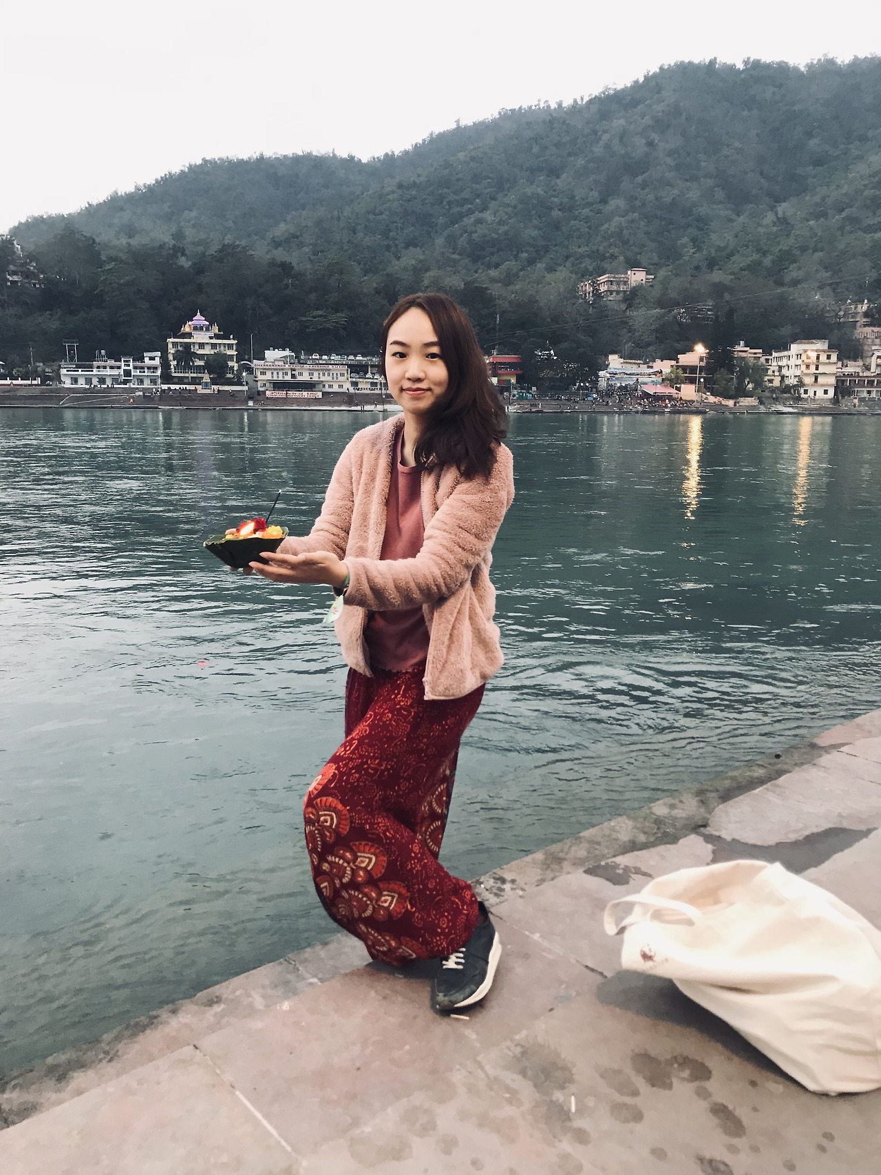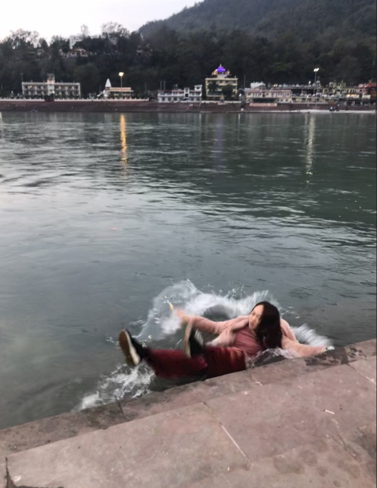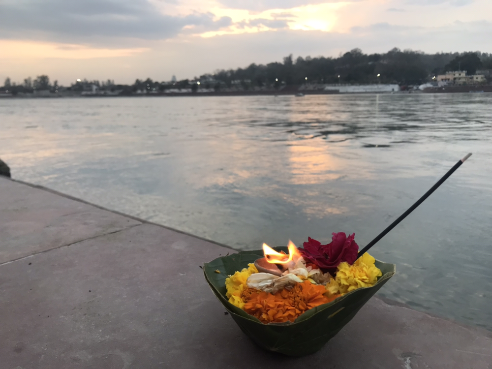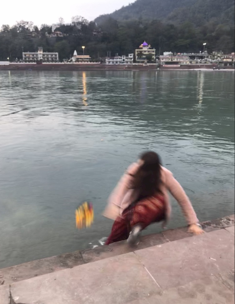 그리고 우리가 좋아하는 조용한 강가 쪽으로 걸었다. 여기 리시케시에 있는 동안 맘껏 소원을 빌기 위해.