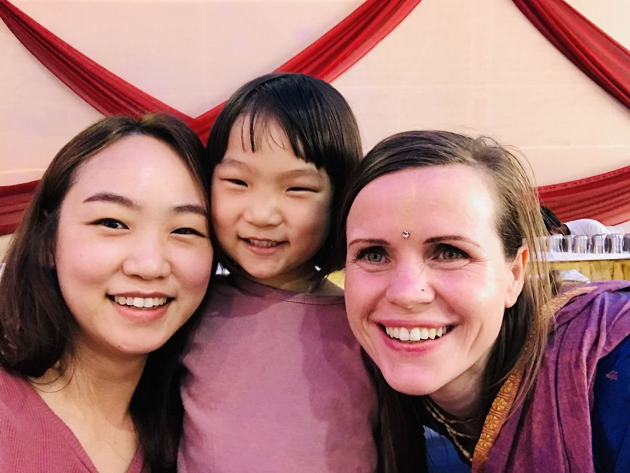 평소의 북적이던 점심시간과 사뭇 다른 분위기였다. 텅텅 빈 텐트 안에서 점심을 먹으려고 하는데 저쪽에 낯익은 예쁜 언니가 보인다. 어제 Kirtan에서 노래를 불렀던 The Love Keys라는 만트라 그룹의 리드싱어였다. 사랑이가 이쁜 언니라고 부르던 독일에서 온 그녀와 사진을 한 장 남겼다.