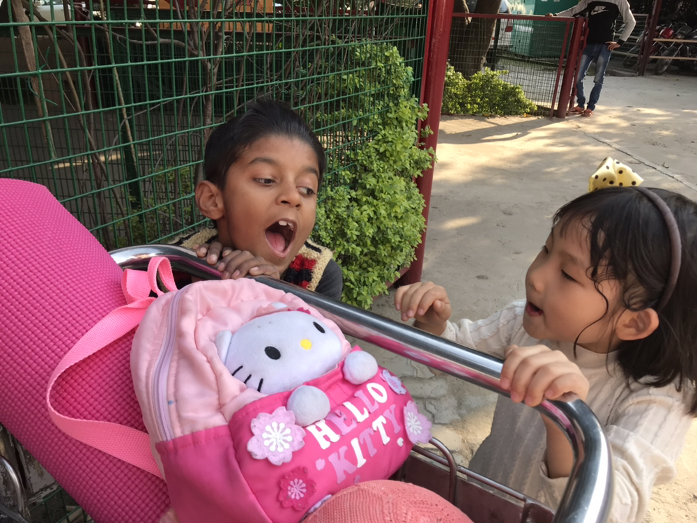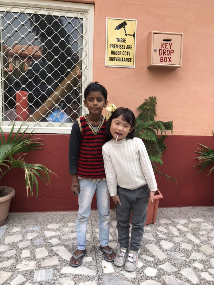 우리 이제 가야해 잘 지내라는 인사를 하고 인도 소년에게 약간의 용돈을 건넸다. 인도 아이들에게 돈을 주면 안된다고 말하는 사람들도 있지만 며칠간 내내 함께했던 아이에게 이모 같은 마음이 올라와 주는 용돈이었다. 아쉬운 눈빛. 택시를 탄 깍두기도 섭섭한지 오빠 보러 나중에 또 놀라 오자고 했다. 녀석들 붙어서 놀더니 정이든 거 같았다.
