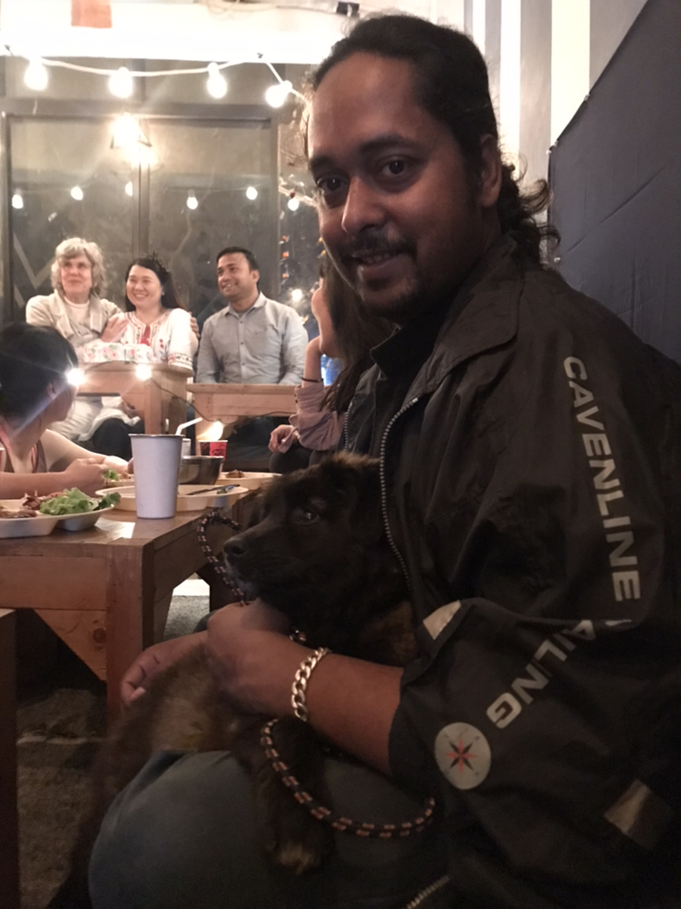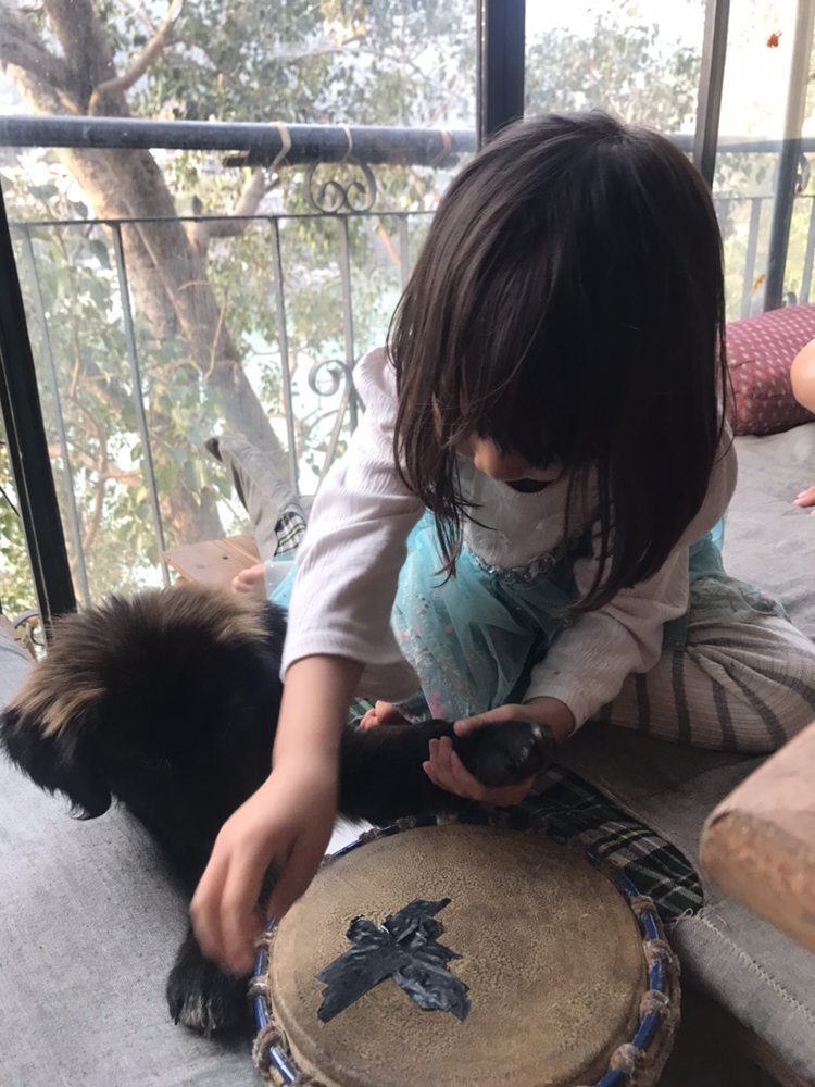 한국식당에 도착해서 2층으로 올라갔다. 깍두기와 반나절만에 절친이 된 인도 삼촌은 깍두기 심심할까봐 타블라와 본인이 키우는 강아지 그래미를 데려다주었다.