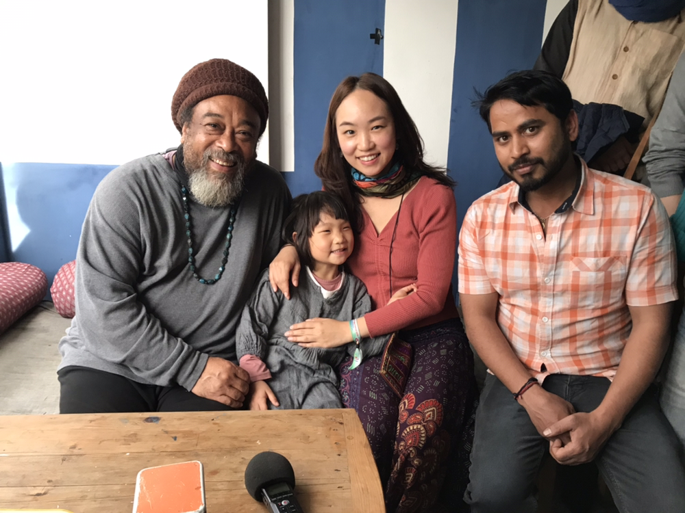 유럽과 인도 청년들은 약간 흥분한 기색으로 눈이 하트 뿅뿅되어서 그의 말 하나하나에 귀를 기울이고 있었다. 한 명씩 그에게 가서 축원을 받고 본인 이야기를 했다. 사람이 많아서 모두 그 기회를 얻을 수는 없는 분위기여서 누군가 그와 대화를 나누면 내심 부러운 눈치였다. 그와 대화를 나눈 사람들 중 몇몇은 울기도 했다. 그냥 깍두기와 언저리에서 구경만 해야겠다고 생각하고 있는데 갑자기 어딘가에서 나타난 인도 삼촌 수라지가 깍두기를 번쩍 들어 무지바바 옆에 턱 하고 앉히는 것 아닌가. 그러더니 애엄마 오라며 나에게 손짓을 했다. 모두의 시선이 우리에게 꽂혔다. 이럴 때는 1분 1초라도 낭비 안하는게 저들을 돕는거다 싶어서 후딱 무지바바와 깍두기의 곁으로 갔다.