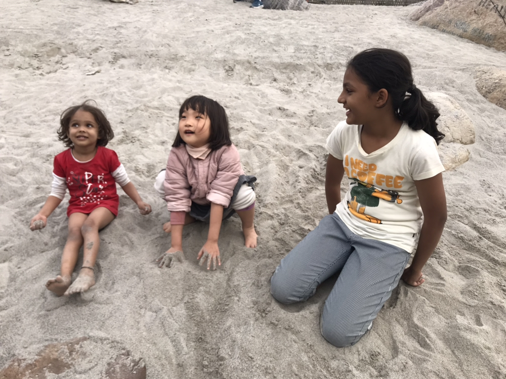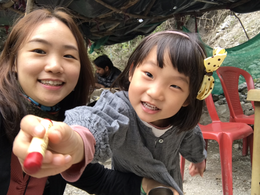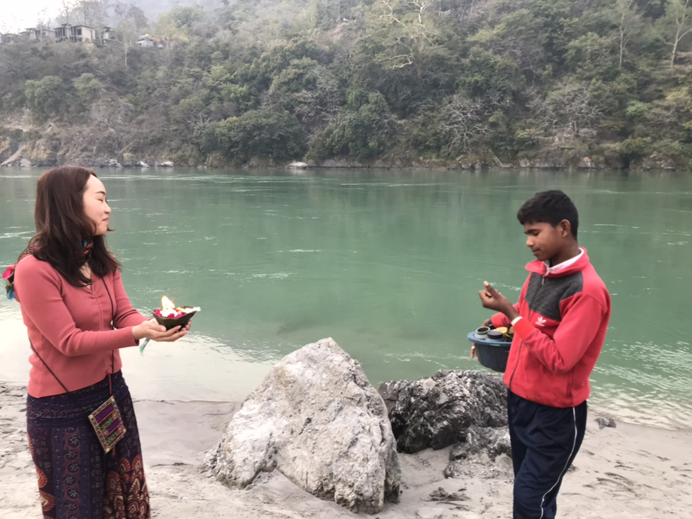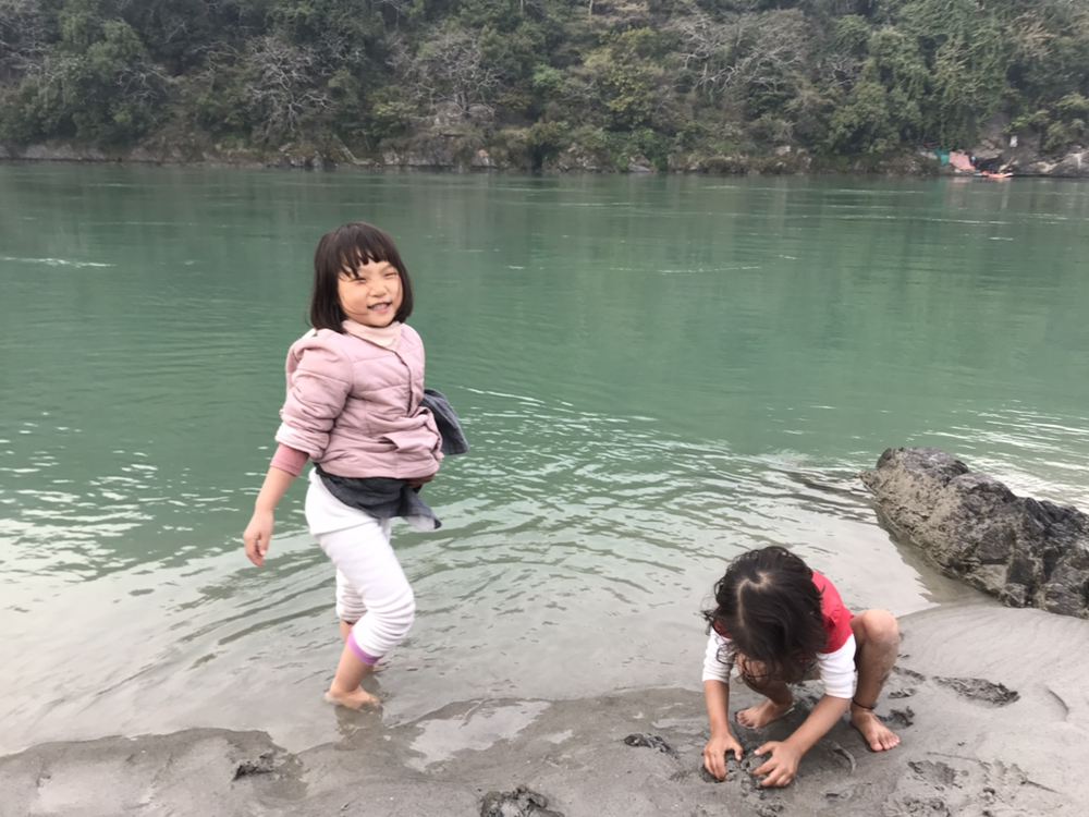 강가에 갔더니 한국인으로 보이는 여성 한 명이 인도 아이들과 스스럼없이 놀고 있는 모습이 보였다. 깍두기는 또래 아이들을 만나자마자 얼굴에 웃음이 한가득이었다.