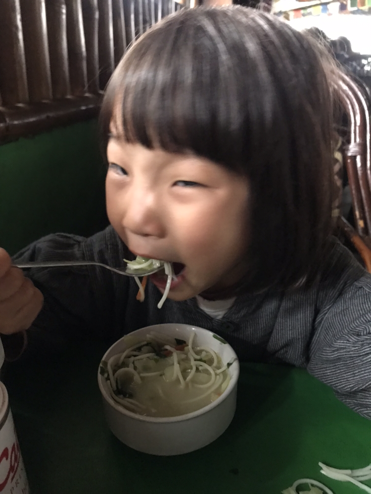 음식이 나오자 호로록하고 잘 먹었다. 역시 만 네 살배기의 편견 없는 미각. 나보다 낫다.
