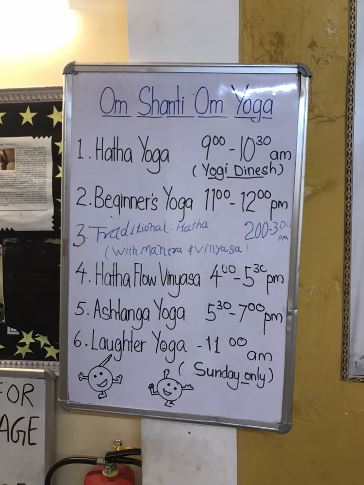 그의 요가 홀은 오리엔트 게스트 하우스에서 멀지 않은 곳에 있었다. 십분 정도 걸어가는 길에 깍두기가 먹을 과일주스와 약간의 간식을 샀다. 오전 8시 30분 수업에 늦지 않게 도착하여 깍두기 매트를 뒤쪽에 하나 깔아주고 내 매트도 깔았다. 영국에서 왔다는 한 여성과 함께 하타요가 수업을 들었는데 1시간 30분짜리 수업이 꽤 인텐시브했다. 내가 요가를 하는 동안 깍두기는 뒤에서 간식도 먹고 그림도 그리고 놀다가 한시간쯤 지나니 내 등에 와서 매달리기 시작했다. 영국에서 온 그녀는 자기도 아이 엄마이자 키즈요가 선생님이라며 분위기 깨는 우리에게 넉넉한 마음을 보여주었다. 만트라, 수리야나마스카라, 아사나, 프라나야마(호흡수련)가 골고루 섞여있는 수업이었다.