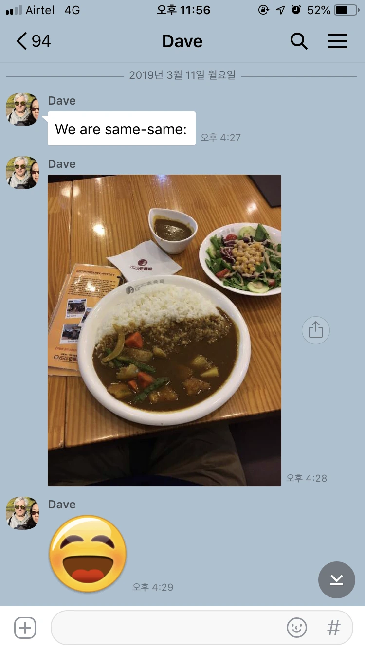 맛있게 먹고 있는데 인도 삼촌 수라지가 전화와서는 빨리 한국식당으로 오라고 했다. 한국 식당에 Moojiji께서 오셨다는 것 아닌가! 오 마이 갓, 진짜?!