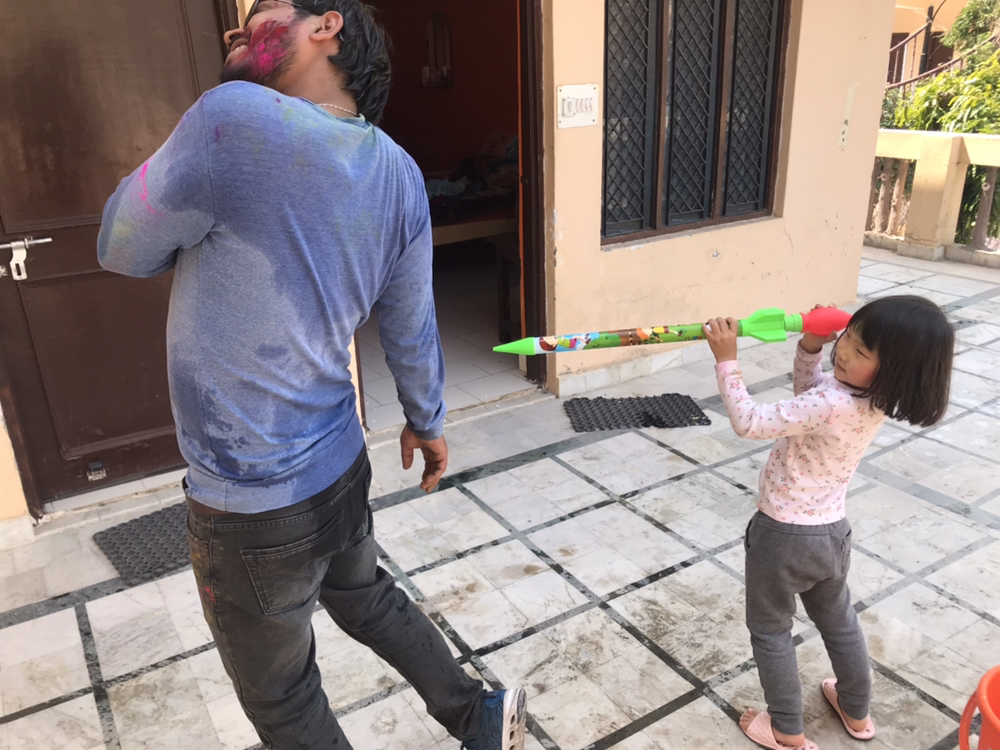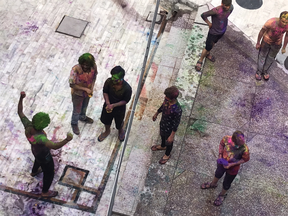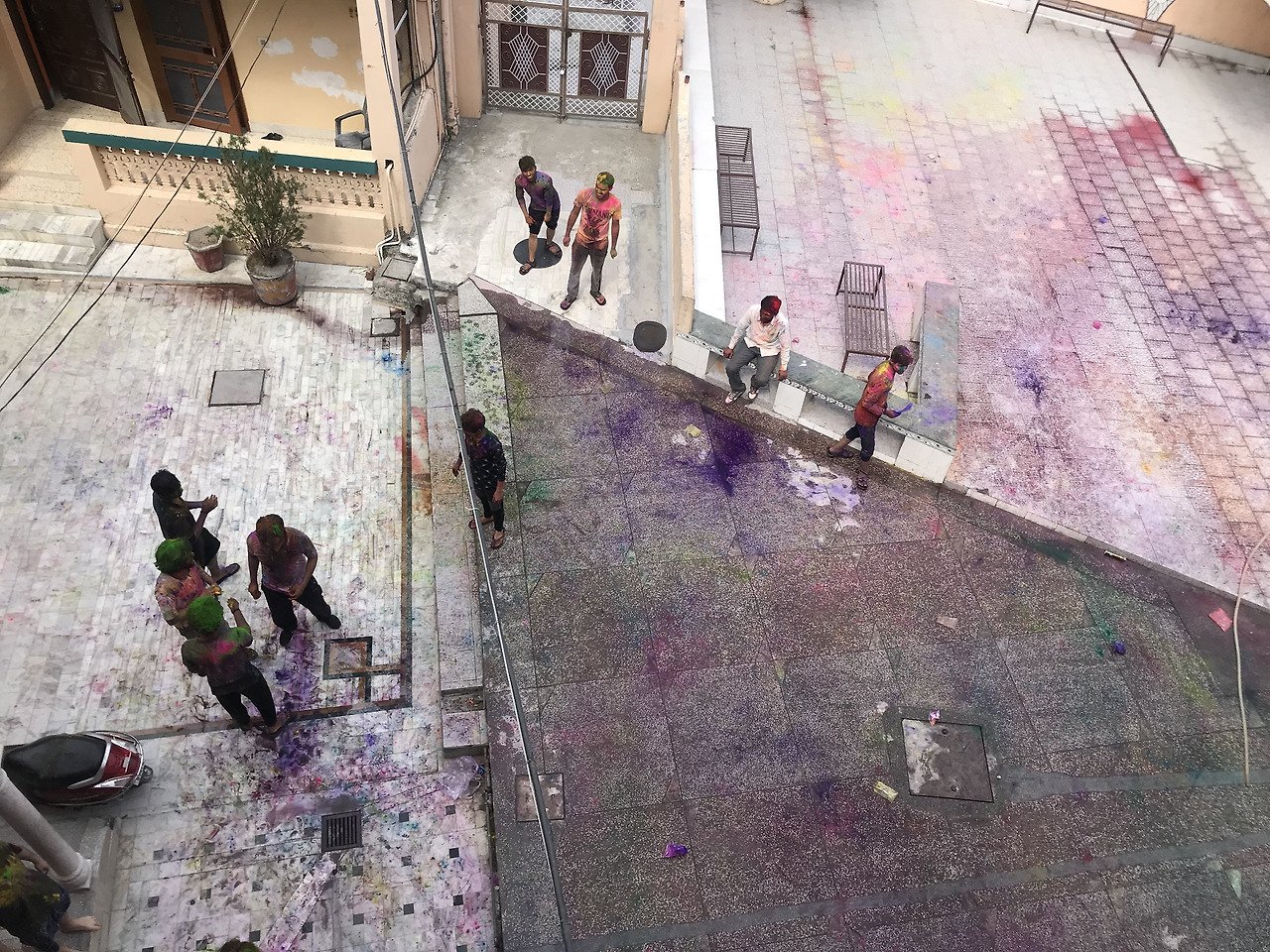 온 동네 경찰이 다 나와있고 서로에게 물을 뿌리고 색가루를 묻히는 시간이 정해져 있다고 했다. 열 시부터 오후 두 시까지? 기억이 정확치는 않다. 아무튼 인도 친구들은 나와 깍두기에게 그 시간에 절대로 밖에 나가지 말라고 신신당부를 했다. 과격하게 노는 사람들이 있어서 위험하다는 말을 해줬다.