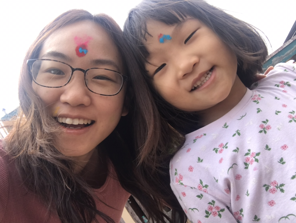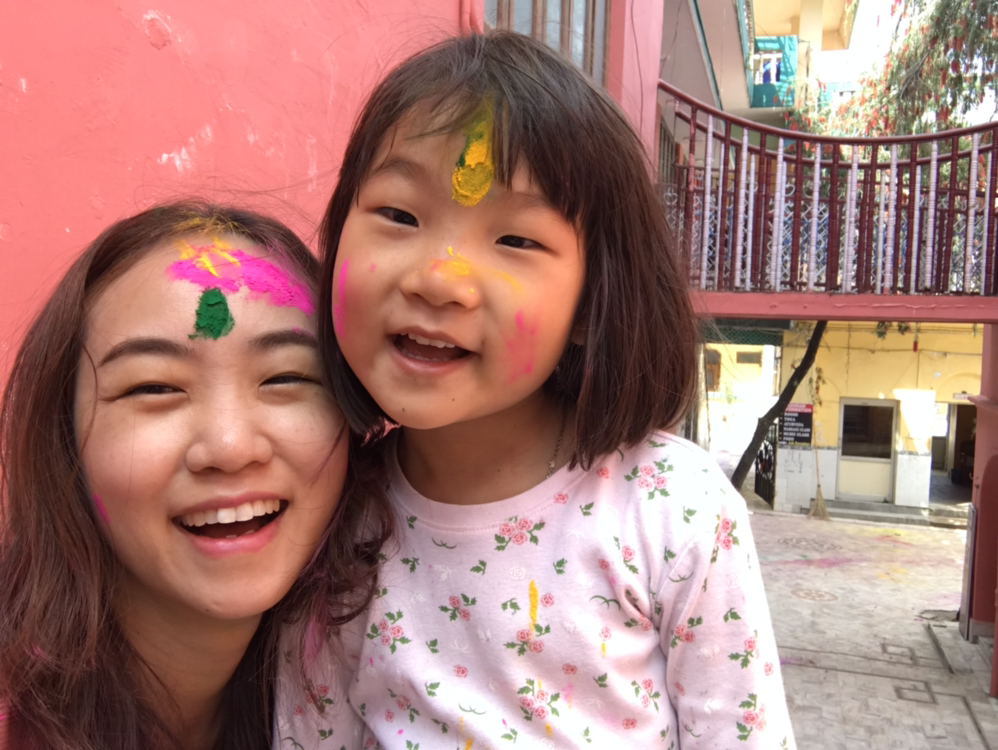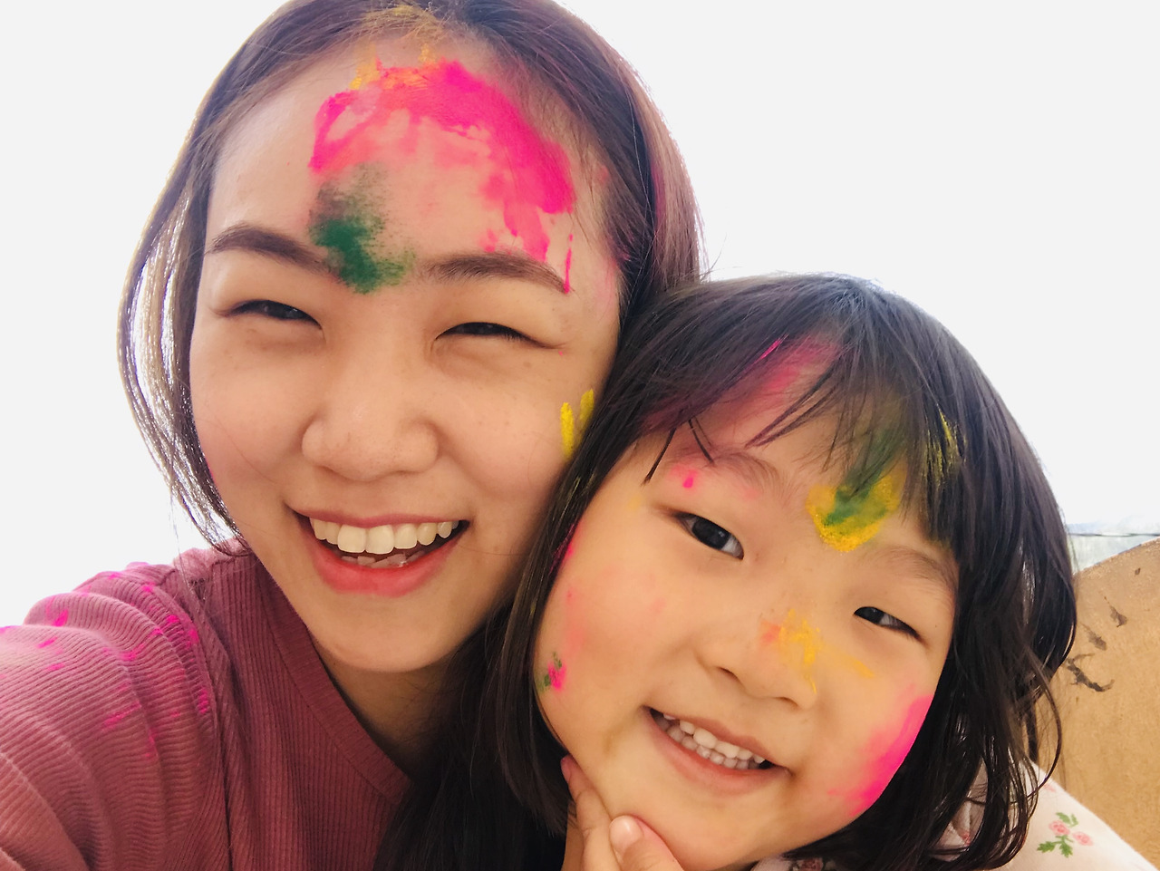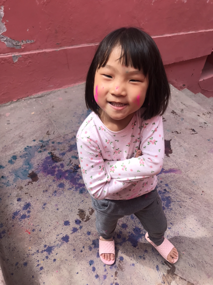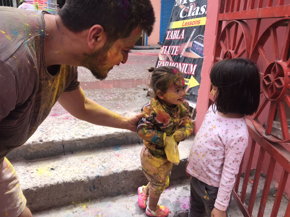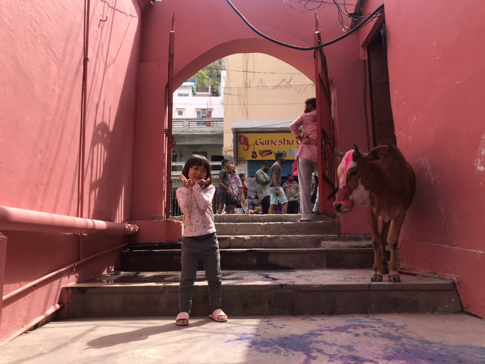 아빠와 지나가는 한참 어린 인도 아기가 우리에게 다가왔다. 인도 아기와 깍두기는 서로의 얼굴을 쓰다듬으며 색가루를 묻히고 꺄르르 웃었다.