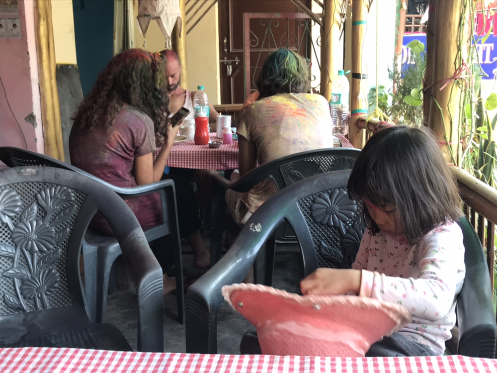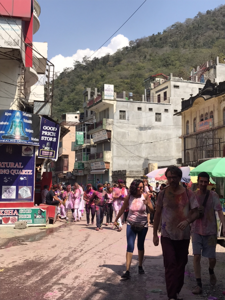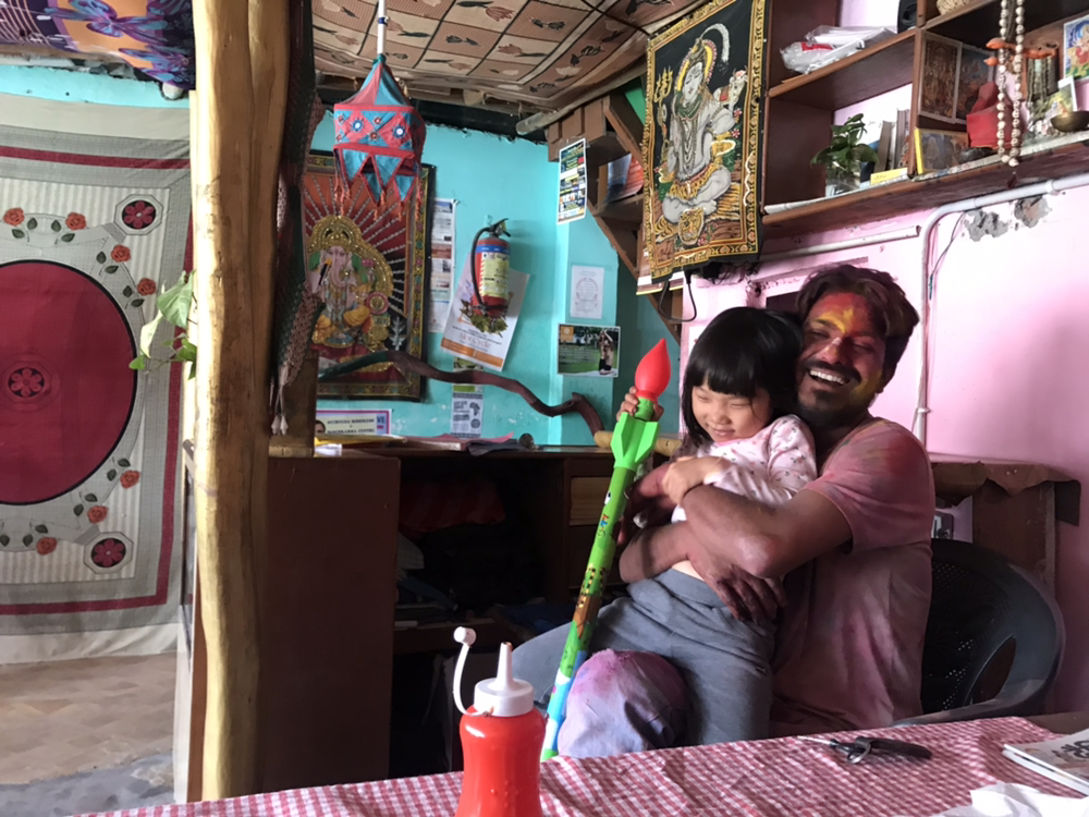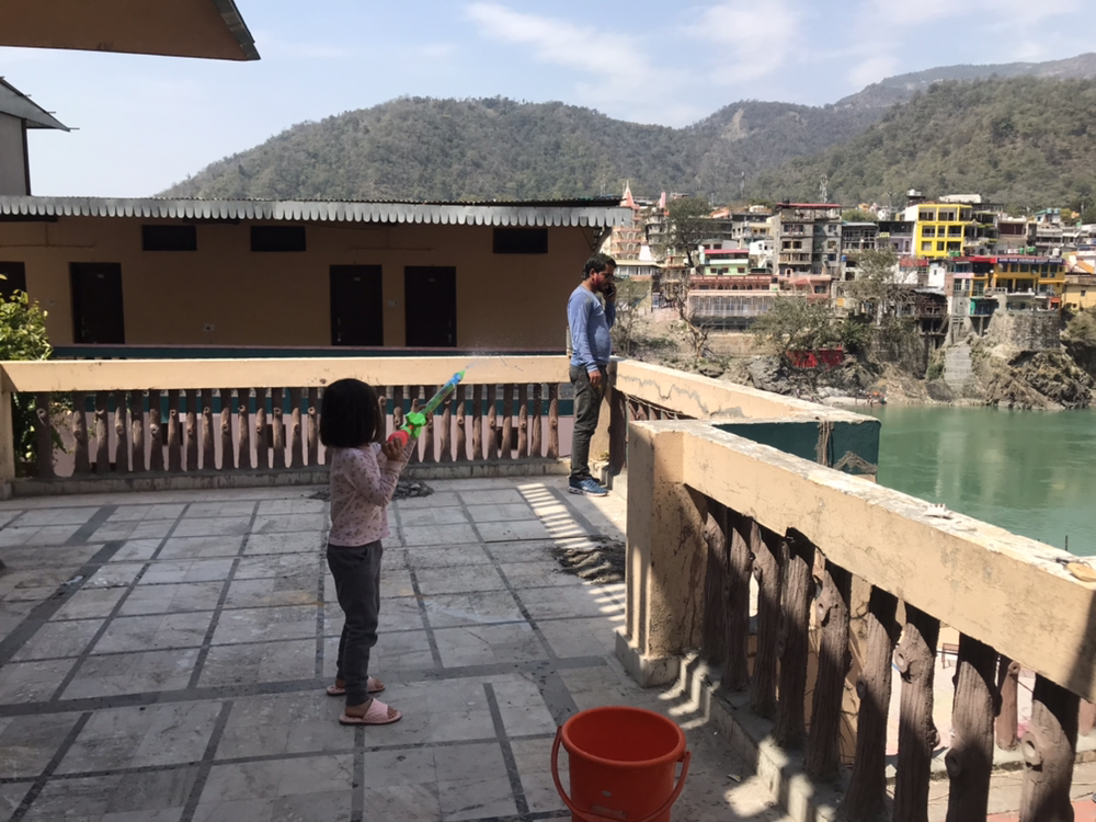그렇게 장난꾸러기 어른들의 배려 속에서 사랑받으며? 안전하게 해리 카페에 도착했다. 카페 앞 강가에는 물로 색가루를 씻어내는 사람들이 있었다. 진정한 홀리 샤워였다.