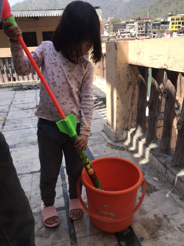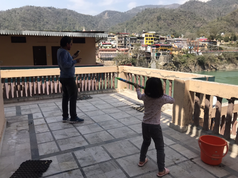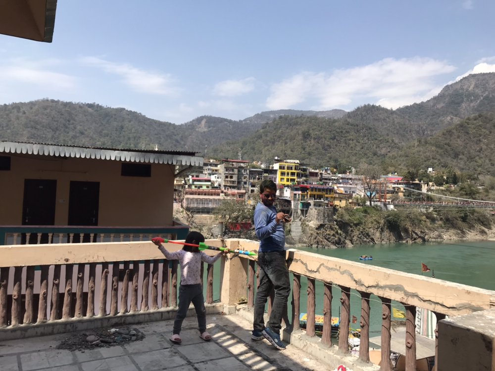 살짝 겁이난 나는 깍두기와 아쉬람 3층 발코니에서 1층에서 노는 사람들을 내려다보았다.