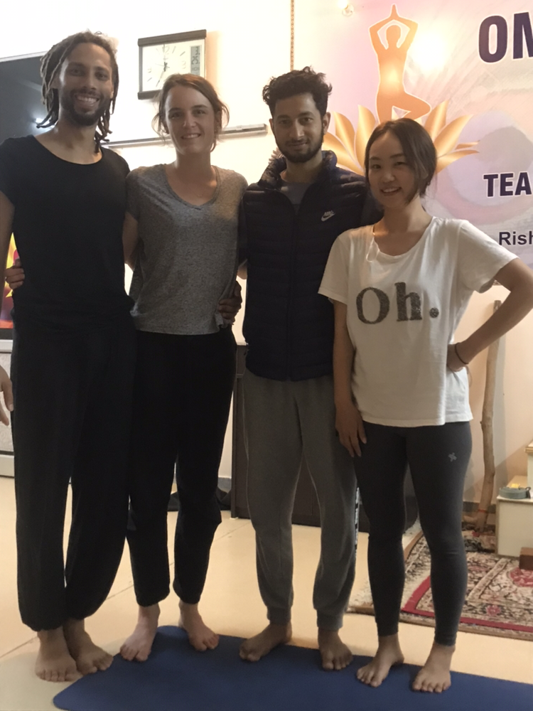 어쨌든 내 옆에 분이 아쉬탕가 선생님 그리고 그 옆에는 나와 같은 아쉬람에 머무는 프랑스 커플이었다. 이렇게 만난 것도 인연인데 사진이나 한 장. 찍사는 우리의 포토그래퍼 깍둑양. 엄지척.