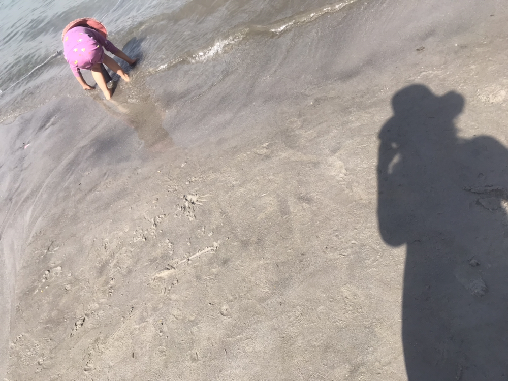 깍두기는 잠시 물에서 놀더니 철퍼덕 앉아 모래놀이를 시작했다.