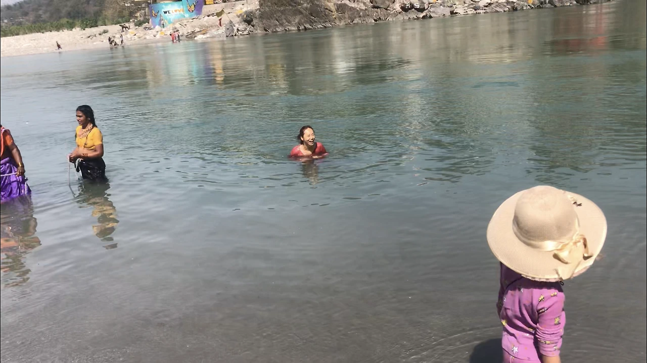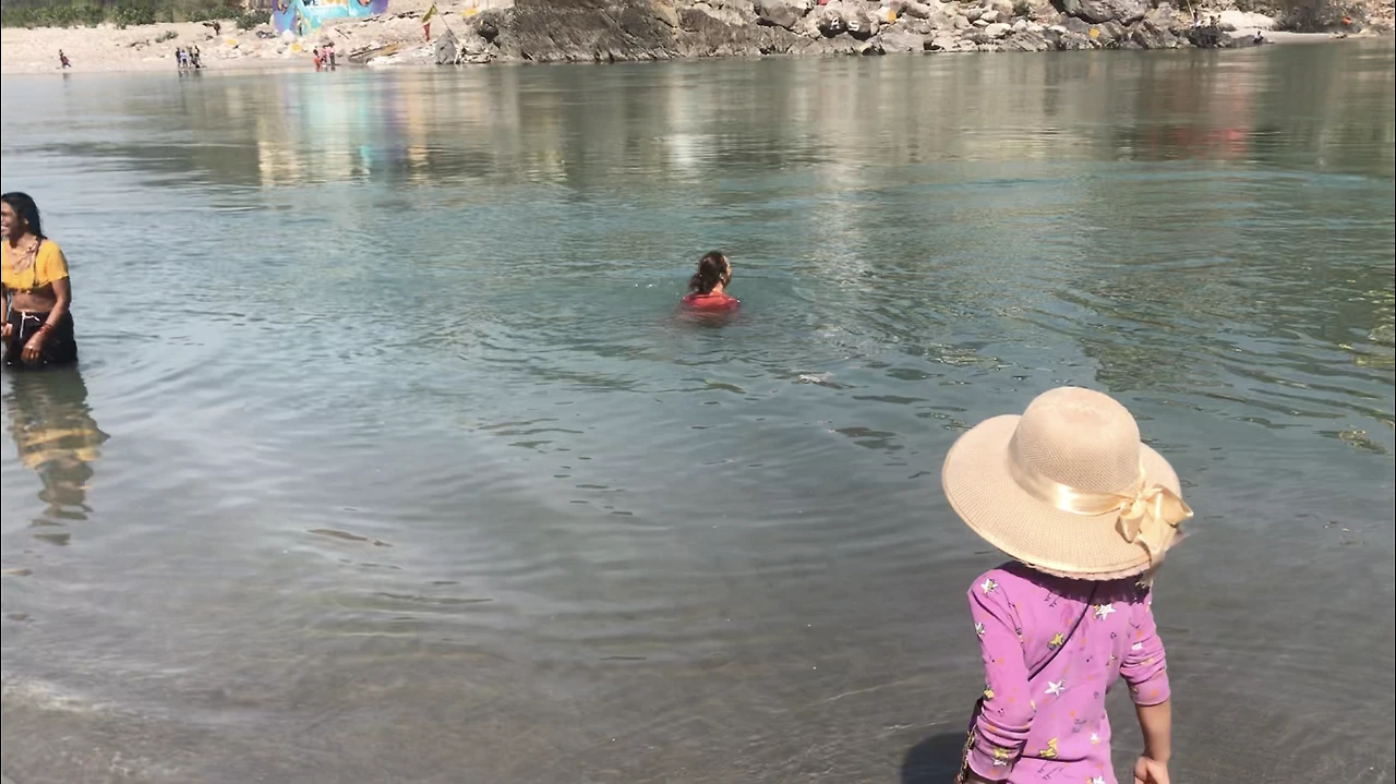 며칠 전 아쉬람 뒷문으로 나가면 바로 강가라는 사실을 알게 되었다. 사람들은 그 문을 통해 나가서 성스러운 아침 목욕을 하고는 했다. 마지막 날. 그냥 이대로 보내기엔 아쉬워서 깍두기에게 강에가서 목욕할까 물으니 눈꼽도 안 뗀 외출 제안에 신이 나서 방방뛰었다.