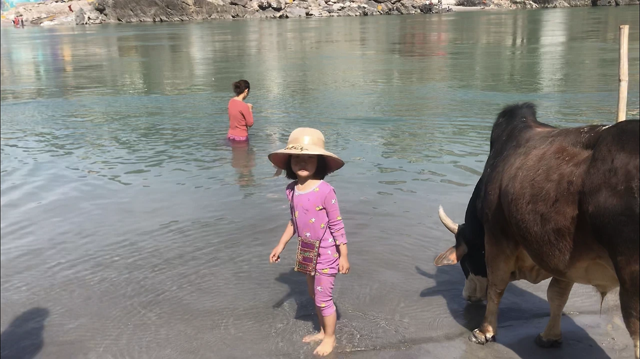 될 것이다. 간밤에 꿈자리가 뒤숭숭해 무거운 몸으로 뒤척이고 있는데 깍두기는 빨딱 일어나 엄마 강보러 나가잔다. 강보러 나가자고 엄마를 깨우는 딸이라니....리시케시여서 가능한 일이었다. 깍두기는 시리얼바 하나를 먹으며 마치 영화 관람하듯 한참이나 강을 내려다보았다. 볼 때마다 신기한 노릇이었다.