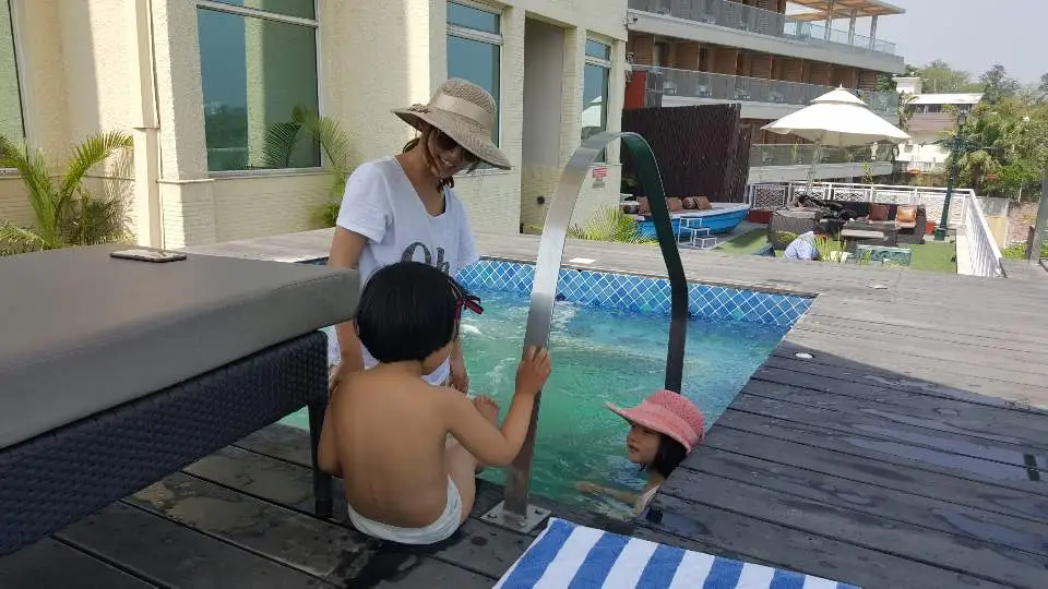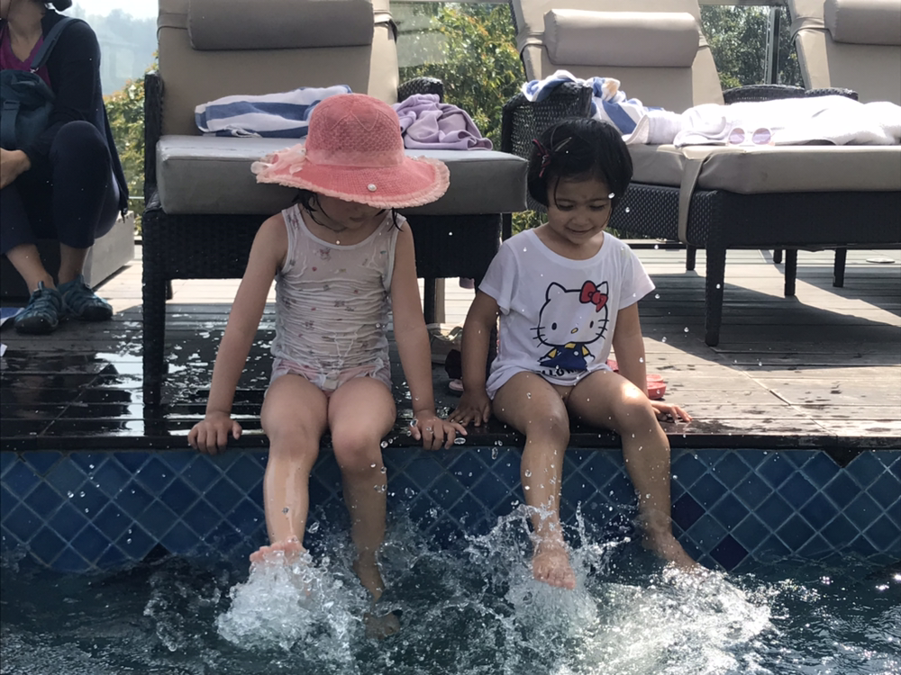 아침에 호텔에서 나간 지니씨까지 돌아왔기에 방에서 잠시 시간을 보내다가 우리 다섯은 호텔 2층에 있는 자그마한 스파로 수영을 하러갔다. 날은 푹푹찌고 물은 뜨겁고 이열치열이었다.