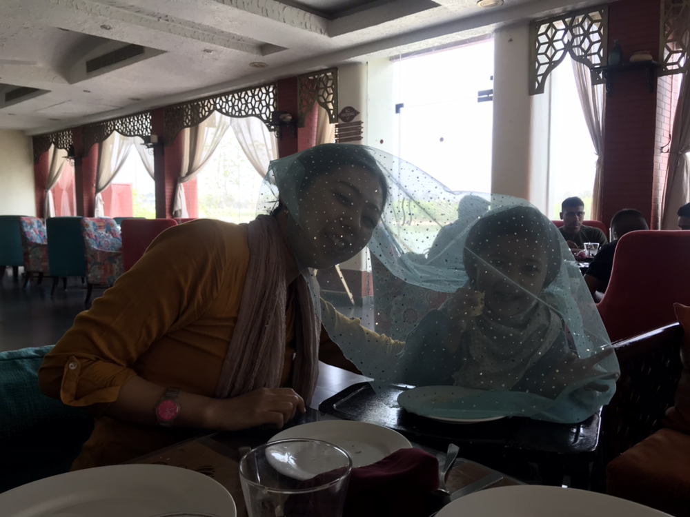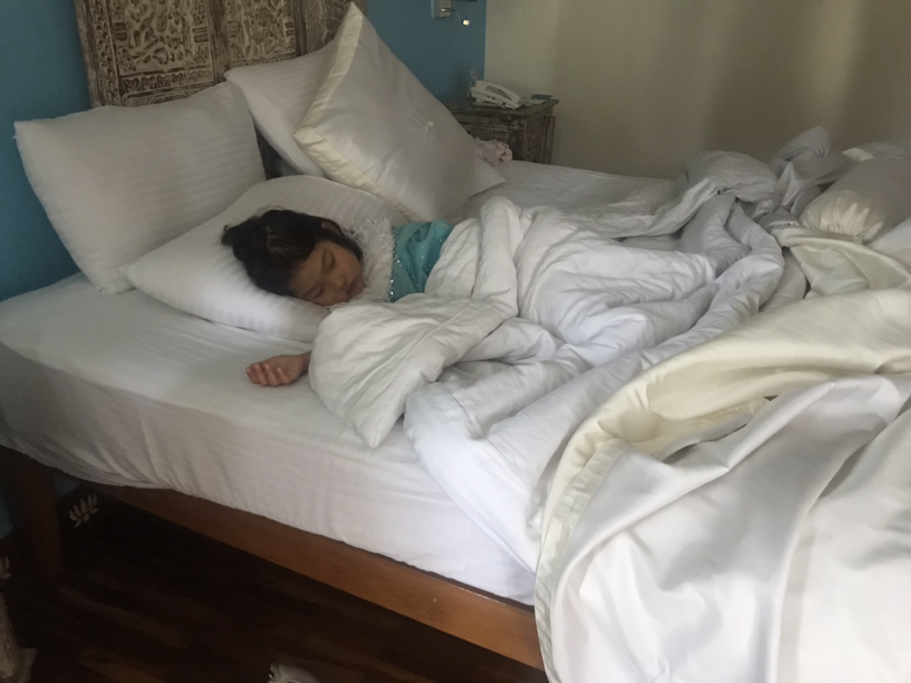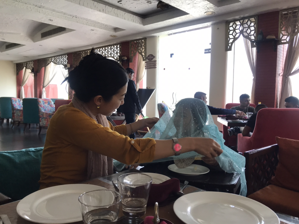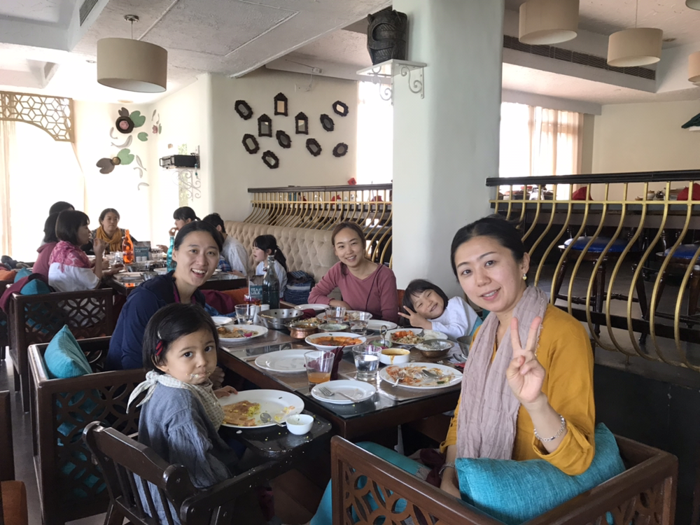 모국을 떠나 타지 생활을 하는 SH씨와 지니씨는 이야기가 잘 통하는 것 같았다. 두 사람에게 잠시 자유시간을 주고 아이들과 함께 입수해서 놀았다. 하지만 무진장 더웠기에 짧게 끝내고 방에 돌아와 아이들을 씻기고 1층 식당으로 내려갔다. SH씨가 주문해준 인도음식들을 먹어 보았는데 참 맛있었다. 머무는 내내 강가끼나르 호텔의 음식은 단연코 최고였다.