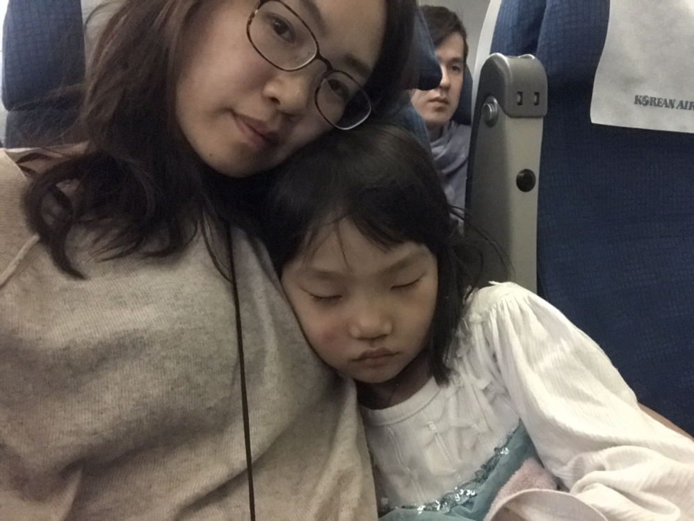 이번에는 깍두기 대신 내가 멀미를 했다. 비행기 멀미에 괴로워서 소화제와 타이레놀을 차례로 먹었다. 저녁으로 나온 대한항공 비빔밥 냄새조차 견디기 어려웠지만 깍두기에게 간신히 먹이고 잠을 청했다. 한숨 자고 일어났더니 잦아든 멀미. 옆에는 눈을 똥그랗게 뜨고 만화보고 게임하는 깍두기가 있었다. 역시나 강적이다.