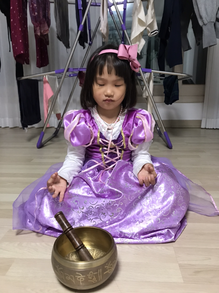 그녀는 놀이를 하다가 뜬금없이 만트라를 부르기도 하고 한달 내내 보아온 요가 아사나 동작이나 명상 자세를 제법 멋지게 흉내 내곤 한다. 요가 조기교육인가 싶어서 그런 모습을 볼 때마다 웃음이 난다.
